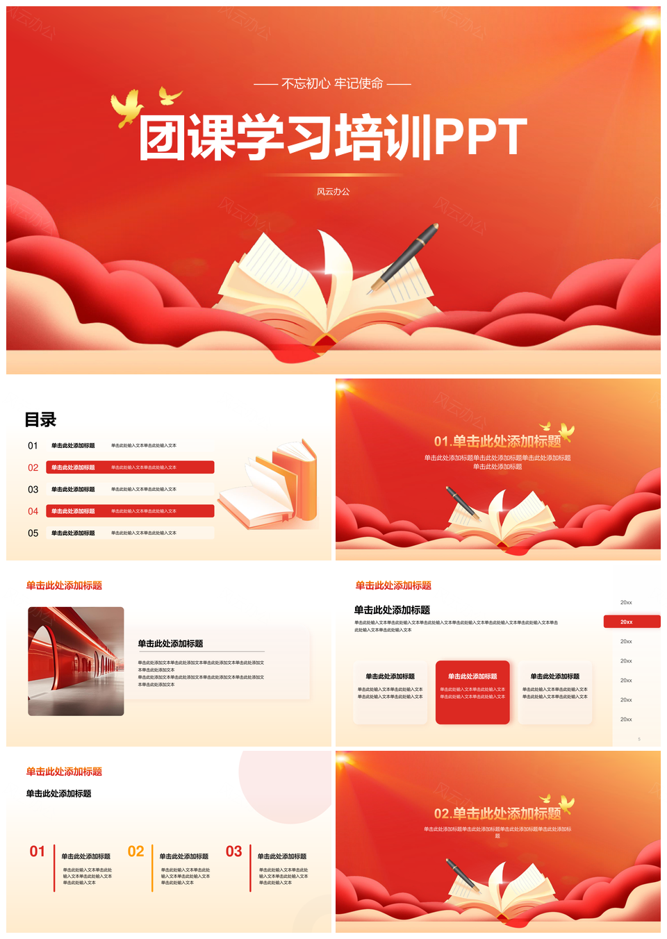 风云办公提供的共青团红橙团课学习书本钢笔鸽PPT模板,下载格式为pptx,一共21页,作品中文字及图均可以修改和编辑,图片更改请在作品中右键图片并更换,文字修改请直接点击文字进行修改。