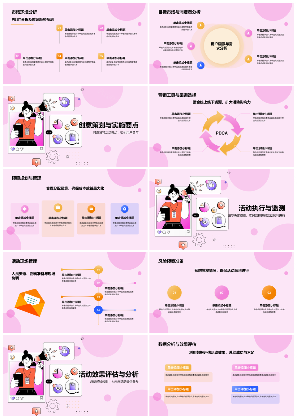 风云办公提供的创意活动营销策划执行方案调研PPT模板,下载格式为pptx,一共20页,作品中文字及图均可以修改和编辑,图片更改请在作品中右键图片并更换,文字修改请直接点击文字进行修改。