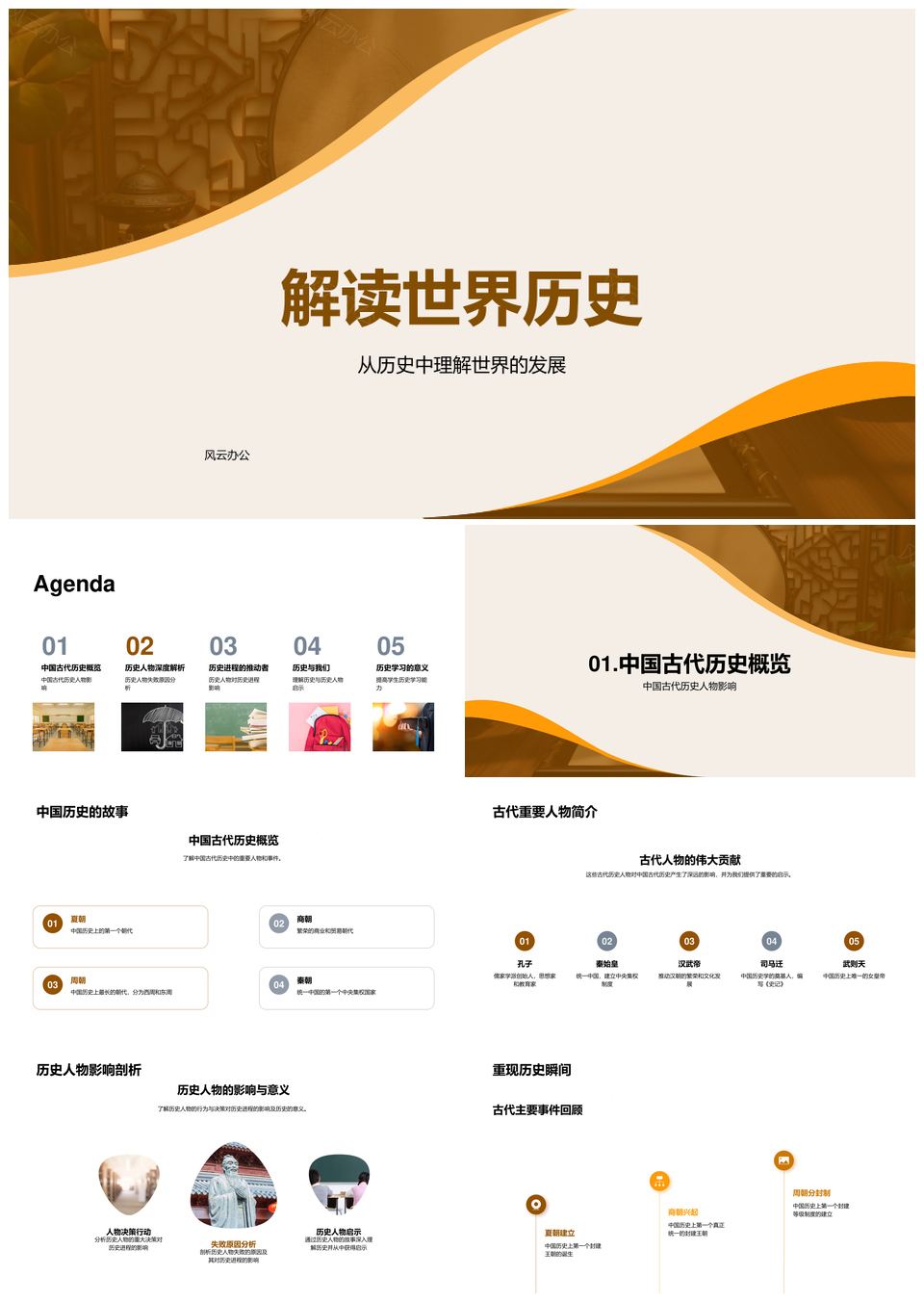 初三世界历史教学课件解析古代卷轴人物事件PPT模板推荐