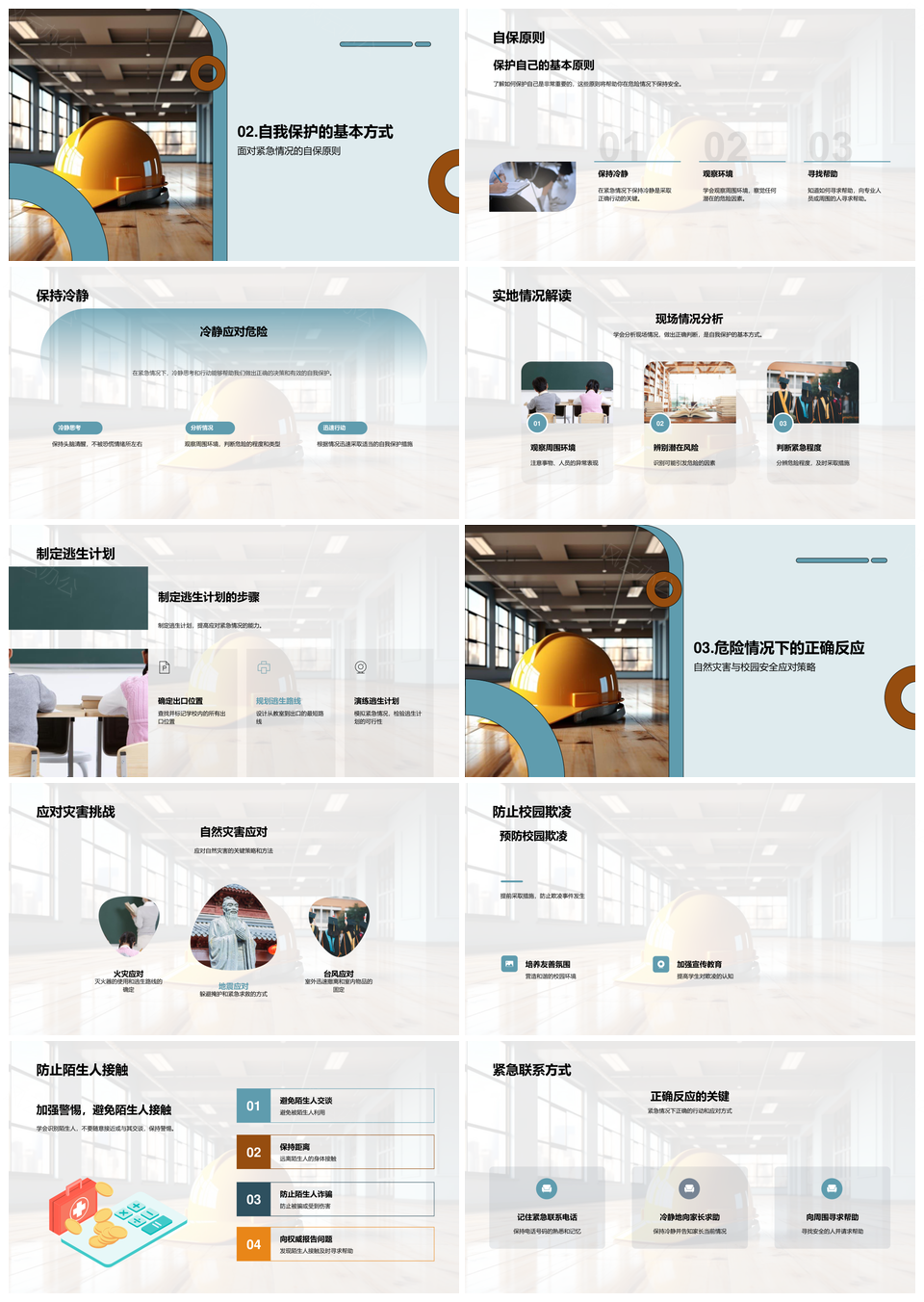校园安全教育管理应急逃生自救校规预防PPT模板