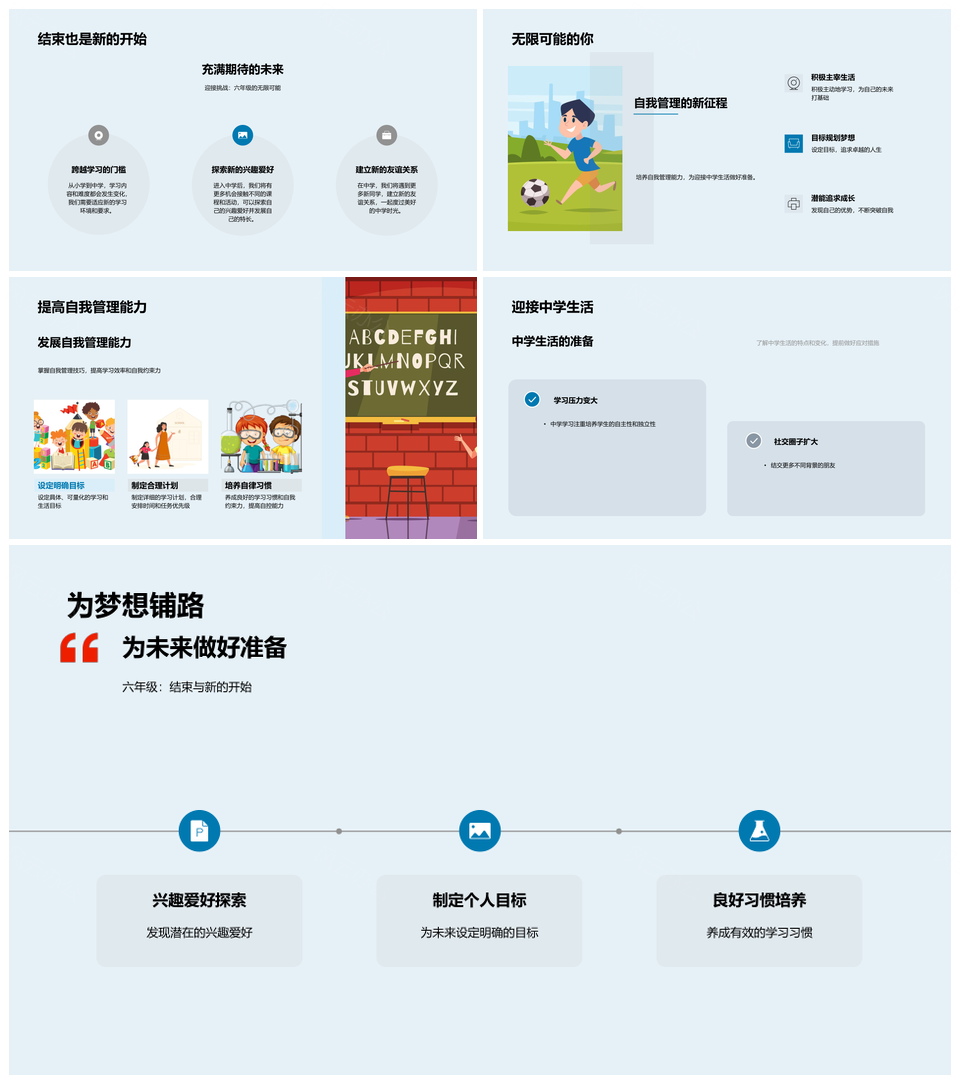 六年级学习成果初中准备自我管理团队合作基础新挑战PPT模板