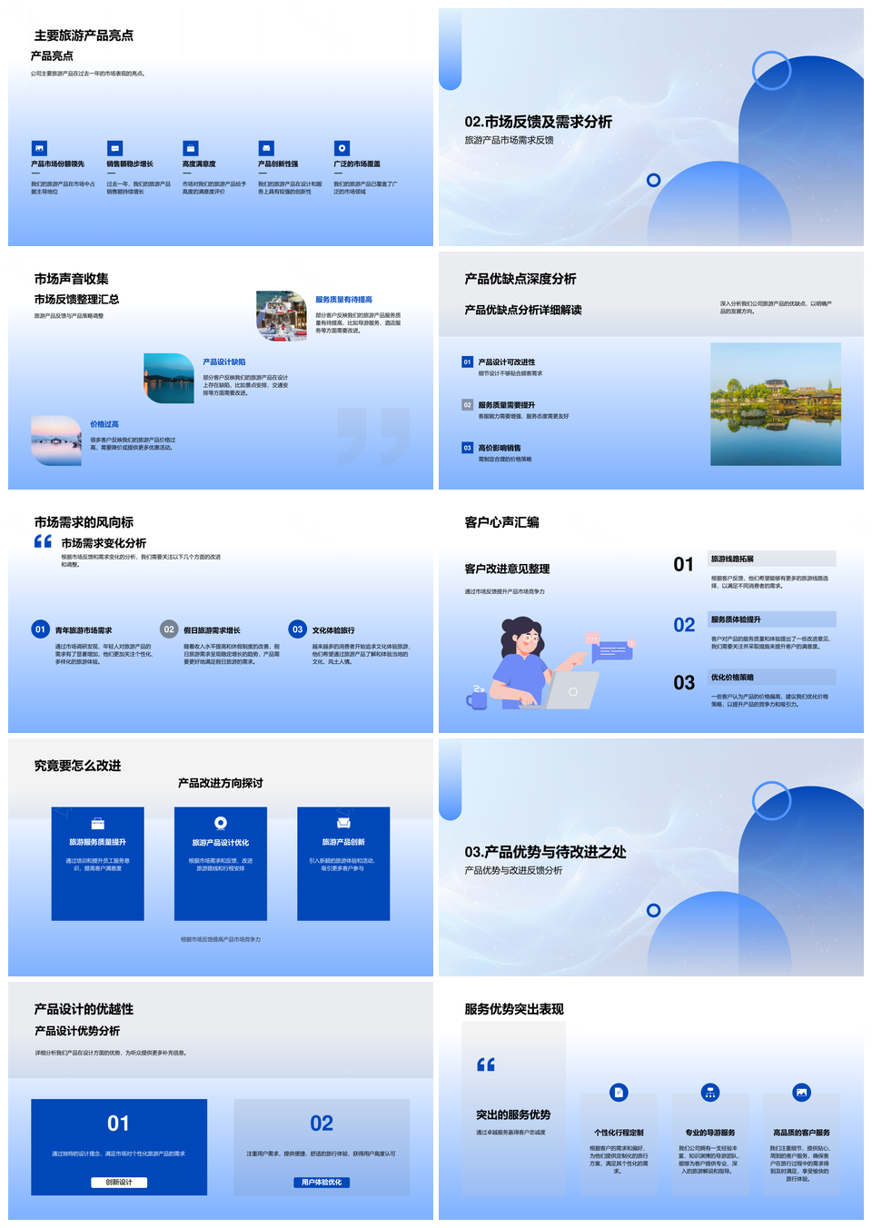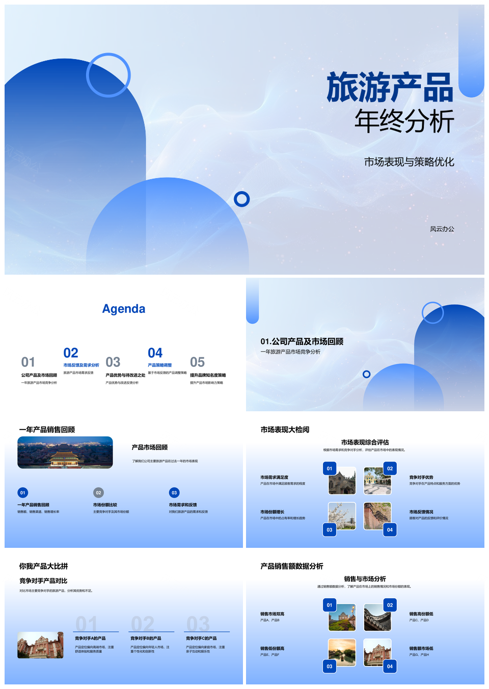 这是一张旅游产品年终市场竞品销售策略优化分析PPT模板,包含旅游产品、年终市场、竞品、销售策略、优化分析等主题内容,也可用作旅游产品年终市场竞品销售策略、年终市场竞品销售策略优化、竞品销售策略优化分析、市场竞品销售策略优化分析、年终市场销售策略优化分析、旅游产品年终市场销售策略、年终市场竞品销售策略、竞品销售策略优化、旅游产品竞品销售策略、年终销售策略优化分析、市场竞品优化分析、旅游产品年终市场、竞品销售策略、销售策略优化、市场竞品等PPT场景使用。 风云办公提供的旅游产品年终市场竞品销售策略优化分析PPT模板,下载格式为pptx,一共33页,作品中文字及图均可以修改和编辑,图片更改请在作品中右键图片并更换,文字修改请直接点击文字进行修改。