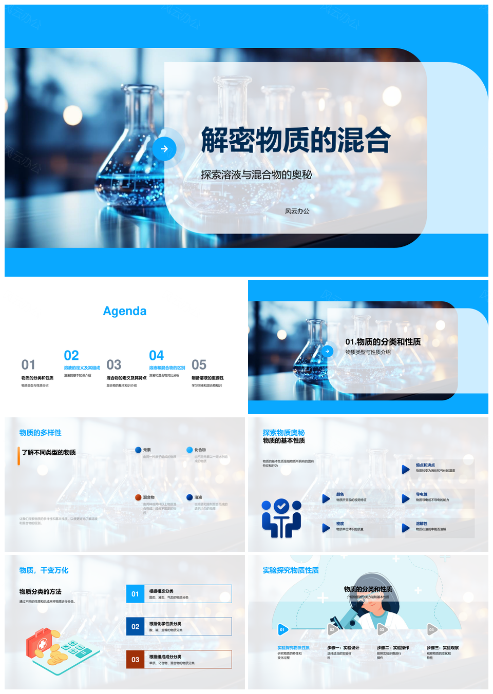 风云办公提供的物质混合类型性质与溶液分类烧瓶PPT模板,下载格式为pptx,一共28页,作品中文字及图均可以修改和编辑,图片更改请在作品中右键图片并更换,文字修改请直接点击文字进行修改。