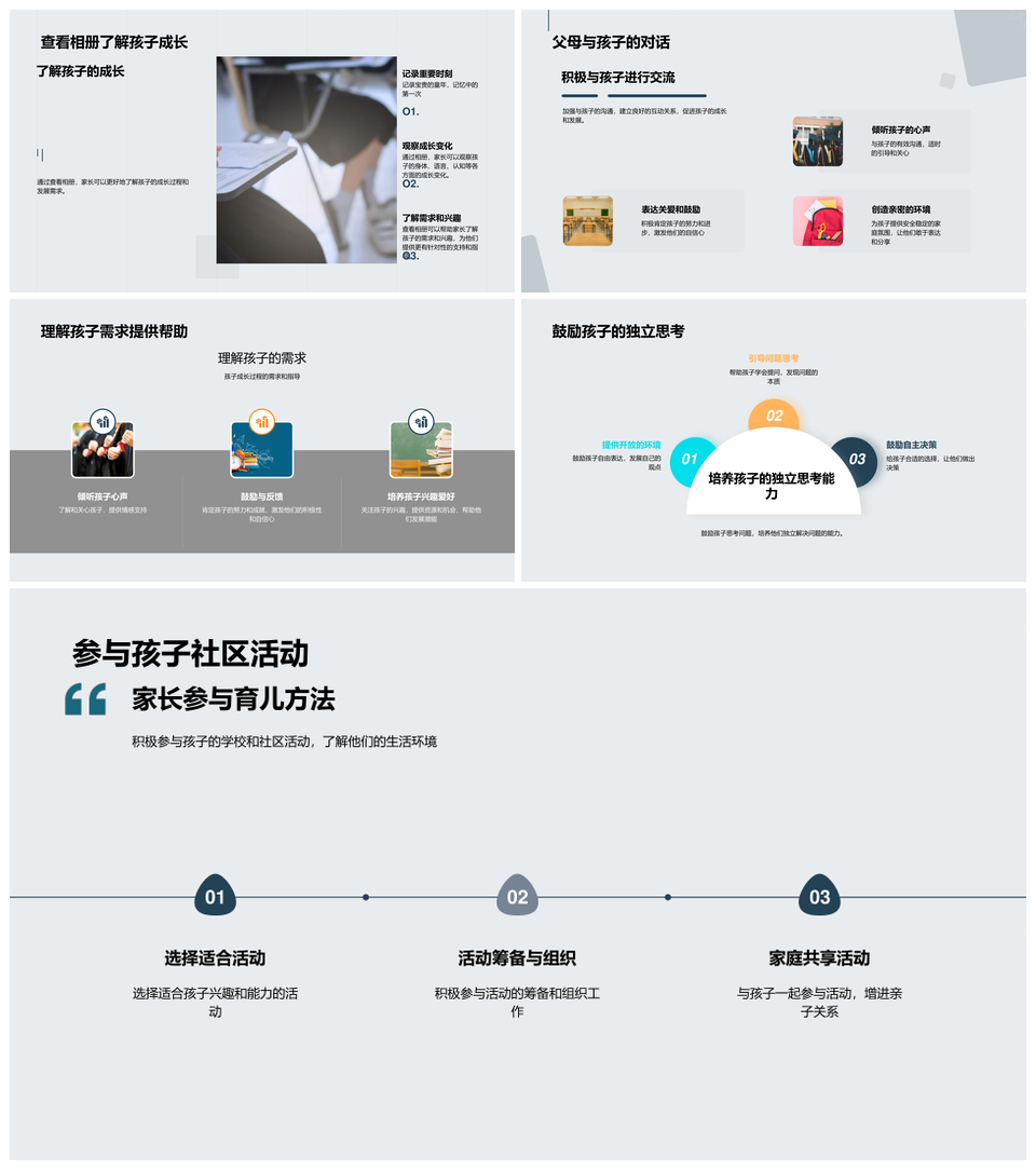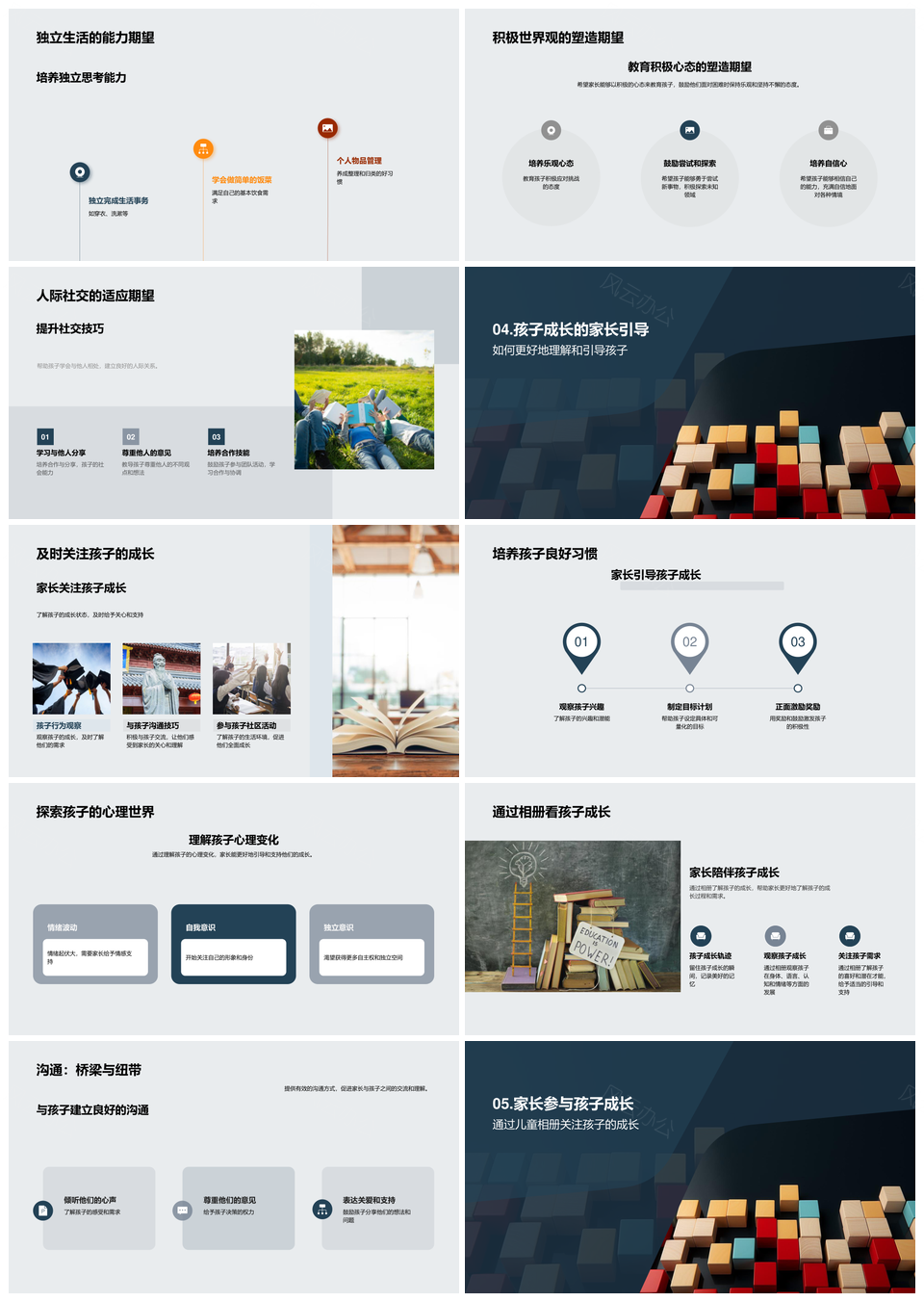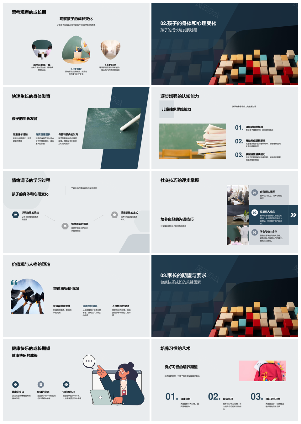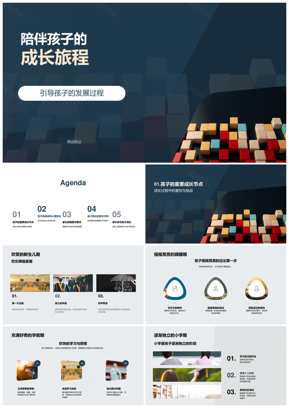 这是一张家长陪伴儿童成长积木教育相册记录发育PPT模板,包含家长、陪伴、儿童、成长、积木、教育、相册、记录、发育等主题内容,也可用作家长陪伴儿童成长、积木教育相册记录、教育相册记录发育、家长陪伴儿童、陪伴儿童成长、积木教育相册、教育相册记录、相册记录发育、家长陪伴、儿童成长、积木教育、教育相册、相册记录、记录发育、陪伴儿童等PPT场景使用。 风云办公提供的家长陪伴儿童成长积木教育相册记录发育PPT模板,下载格式为pptx,一共33页,作品中文字及图均可以修改和编辑,图片更改请在作品中右键图片并更换,文字修改请直接点击文字进行修改。