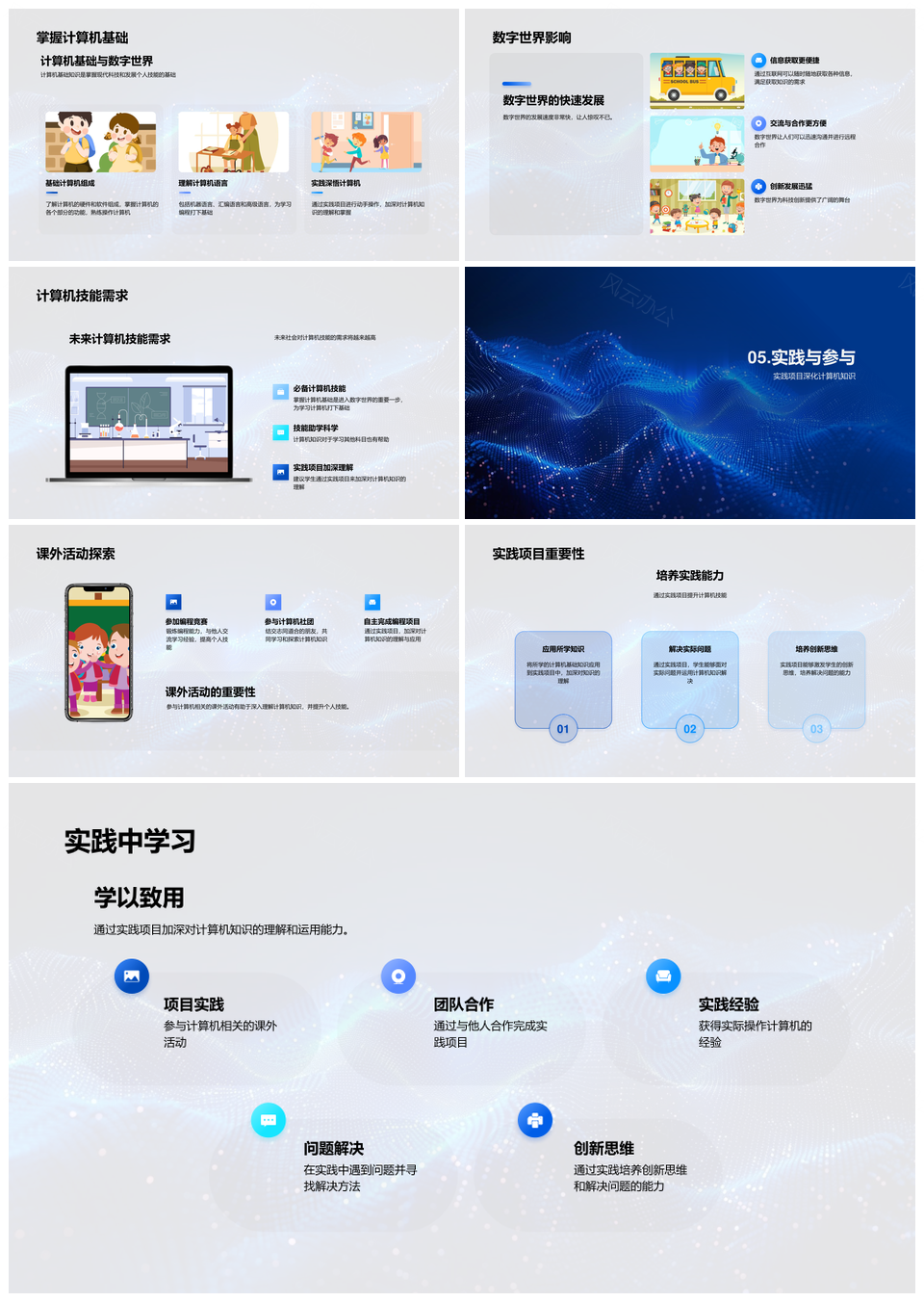 计算机基础教学数字之旅发展史组成数据处理器语言PPT模板推荐