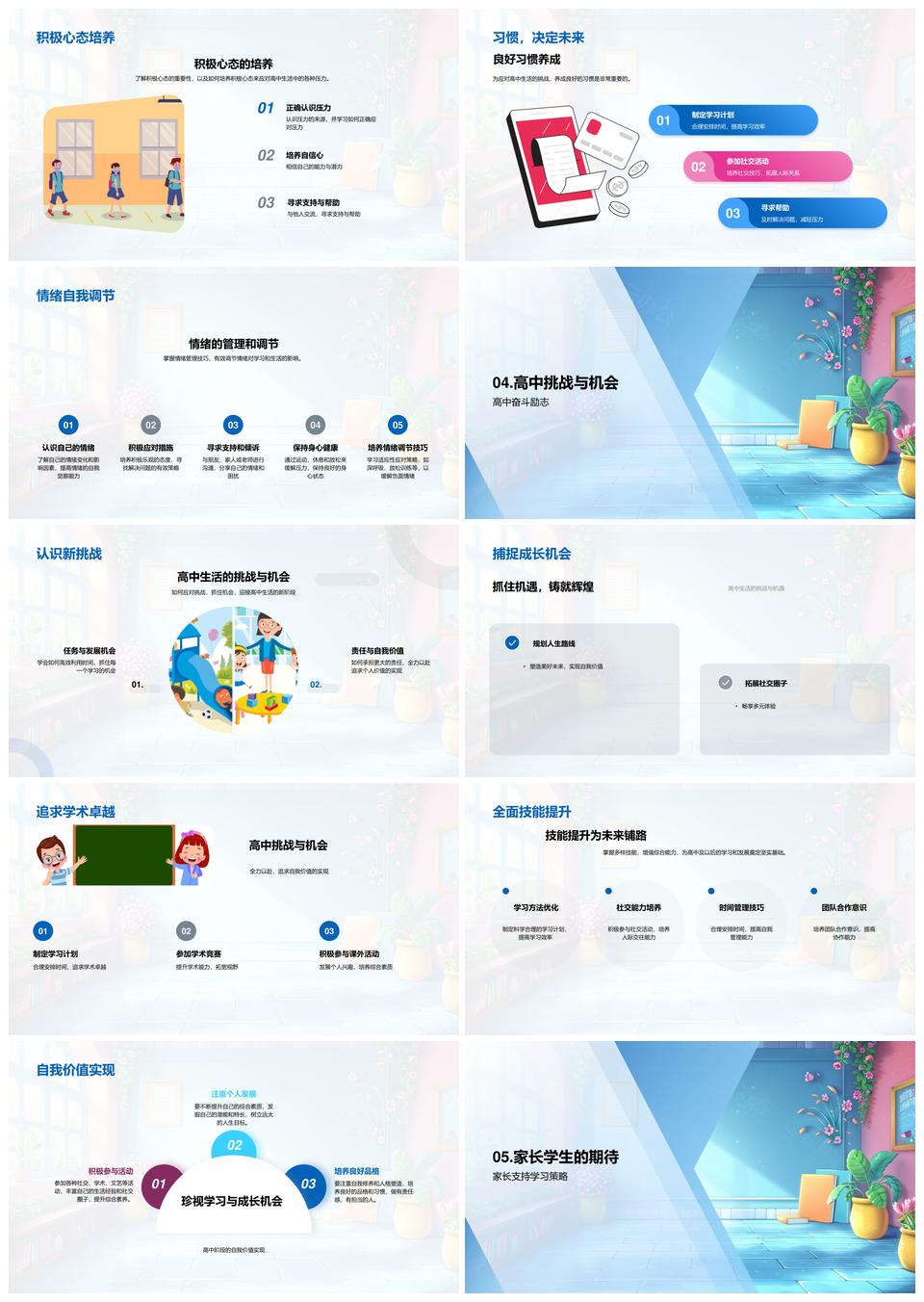 2025高一新生引导报告高中挑战自我管理PPT模板推荐