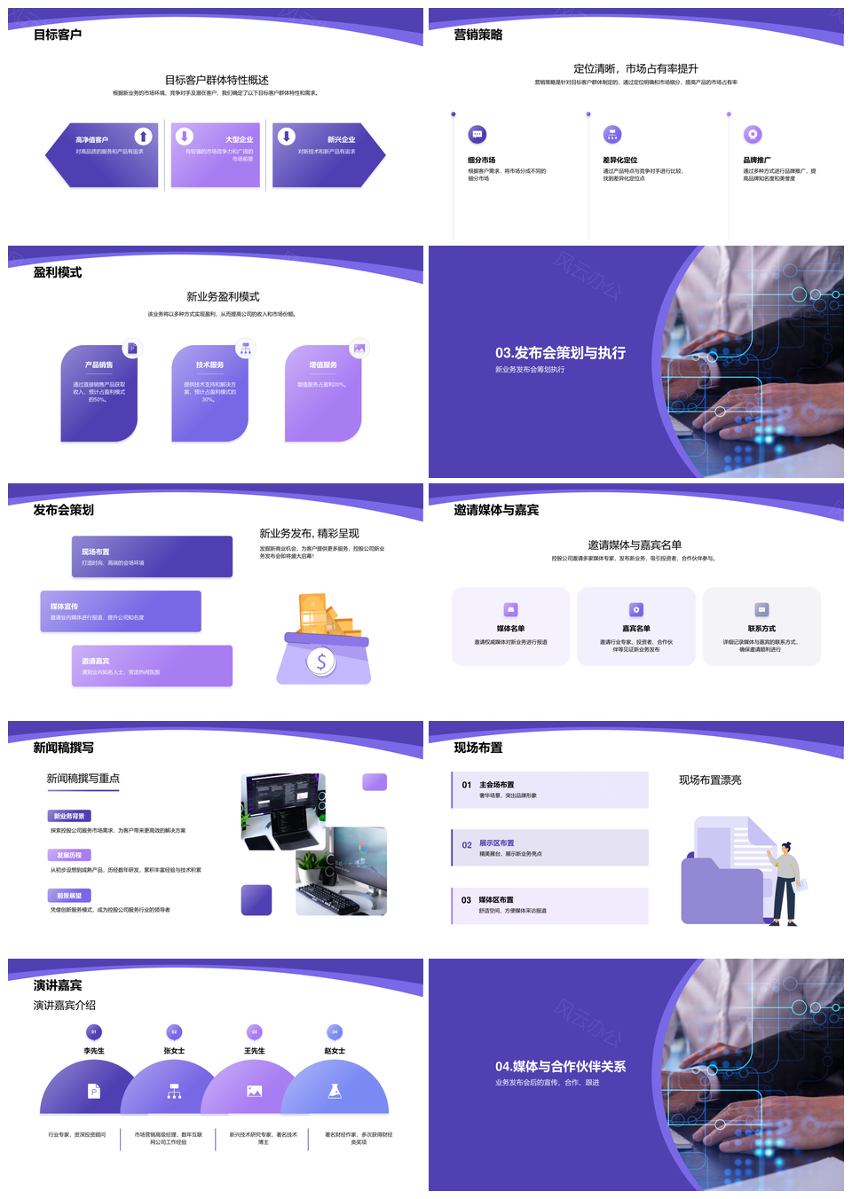 风云办公提供的紫色现代商务发布会活动策划营销案PPT模板,下载格式为pptx,一共25页,作品中文字及图均可以修改和编辑,图片更改请在作品中右键图片并更换,文字修改请直接点击文字进行修改。