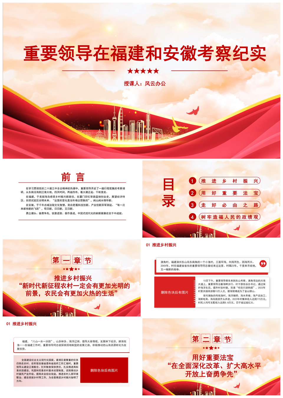 风云办公提供的福建安徽考察纪实党课PPT课件,下载格式为pptx,一共22页,作品中文字及图均可以修改和编辑,图片更改请在作品中右键图片并更换,文字修改请直接点击文字进行修改。