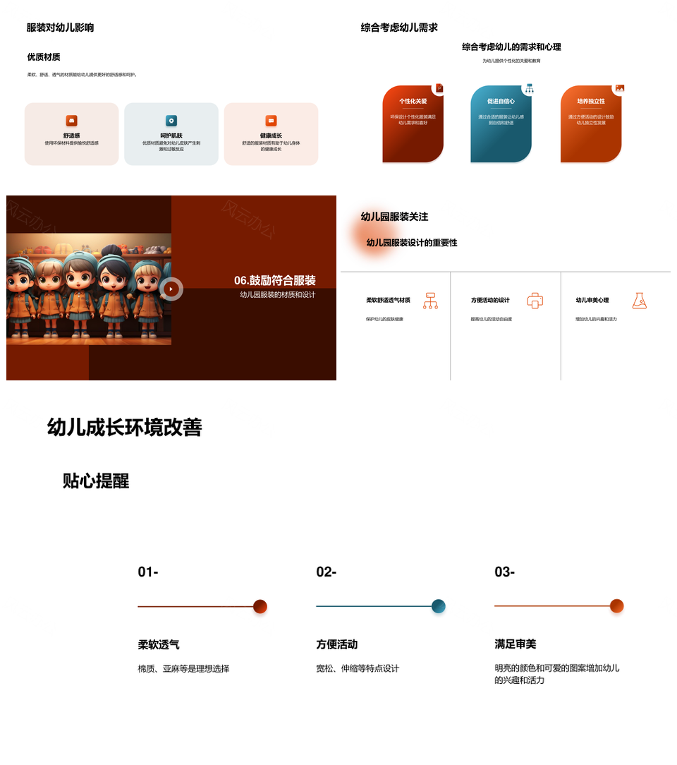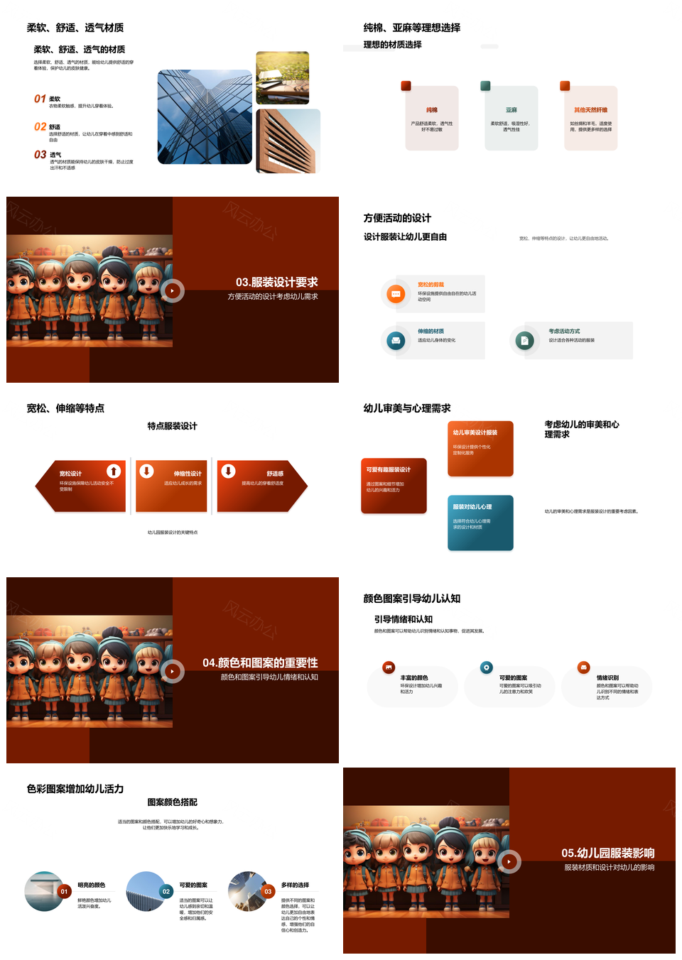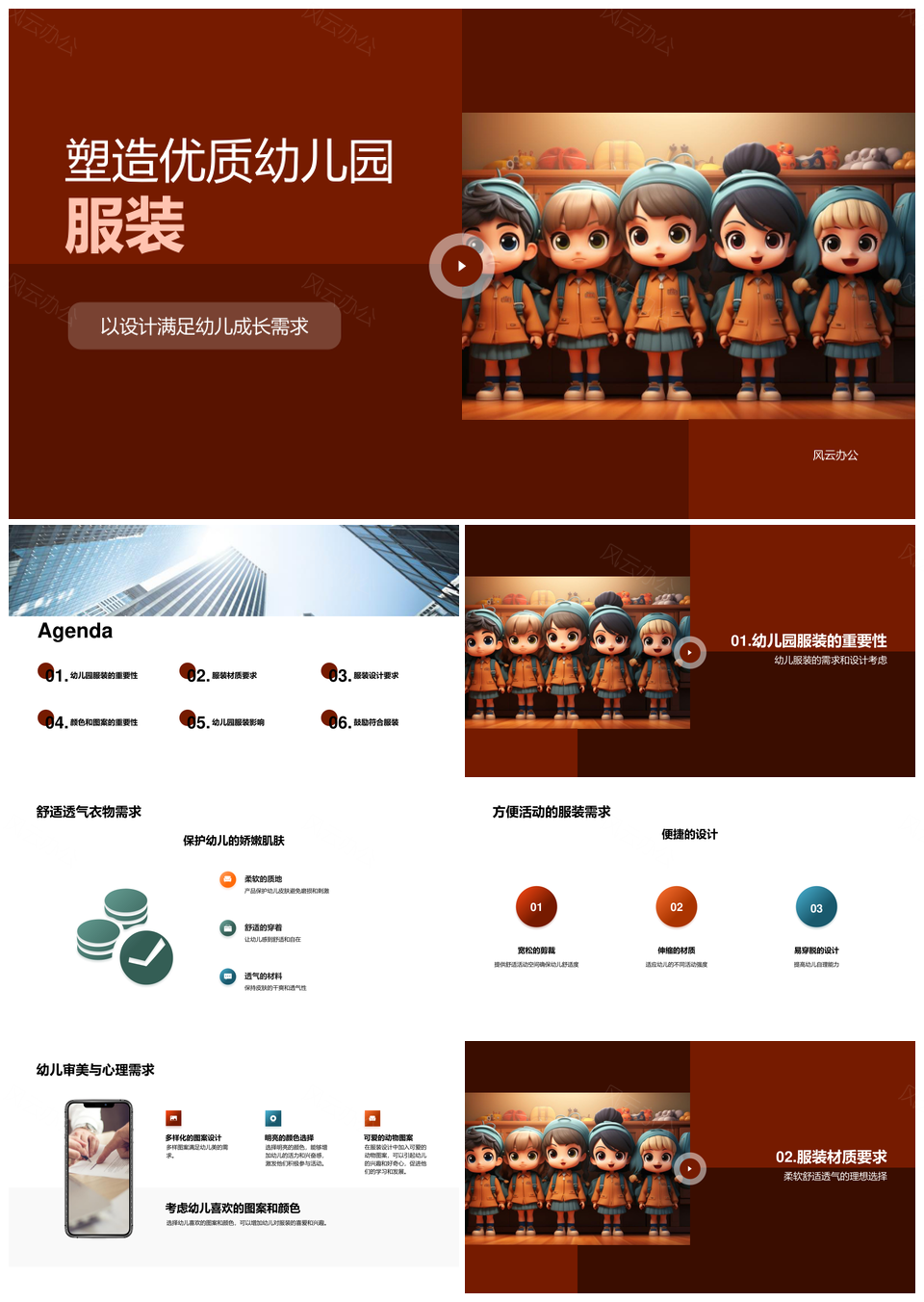 风云办公提供的幼儿成长教育舒适材质幼儿园服装设计PPT模板,下载格式为pptx,一共23页,作品中文字及图均可以修改和编辑,图片更改请在作品中右键图片并更换,文字修改请直接点击文字进行修改。