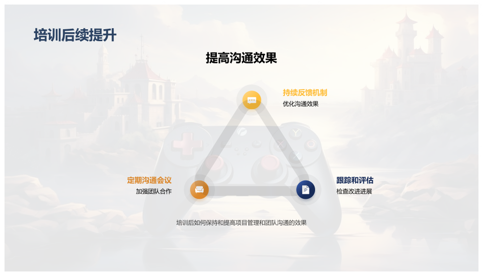 这是一张游戏产业项目开发运营管理沟通策略PPT模板,包含游戏产业、项目、开发、运营、管理、沟通、策略等主题内容,也可用作游戏产业项目开发、产业项目开发运营、项目开发运营管理、开发运营管理沟通、运营管理沟通策略、游戏产业项目、产业项目开发、项目开发运营、开发运营管理、运营管理沟通、管理沟通策略、游戏产业、产业项目、项目开发、开发运营等PPT场景使用。