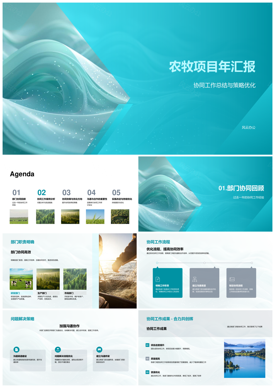 风云办公提供的农牧项目协同策略优化流程案例年报PPT模板,下载格式为pptx,一共33页,作品中文字及图均可以修改和编辑,图片更改请在作品中右键图片并更换,文字修改请直接点击文字进行修改。