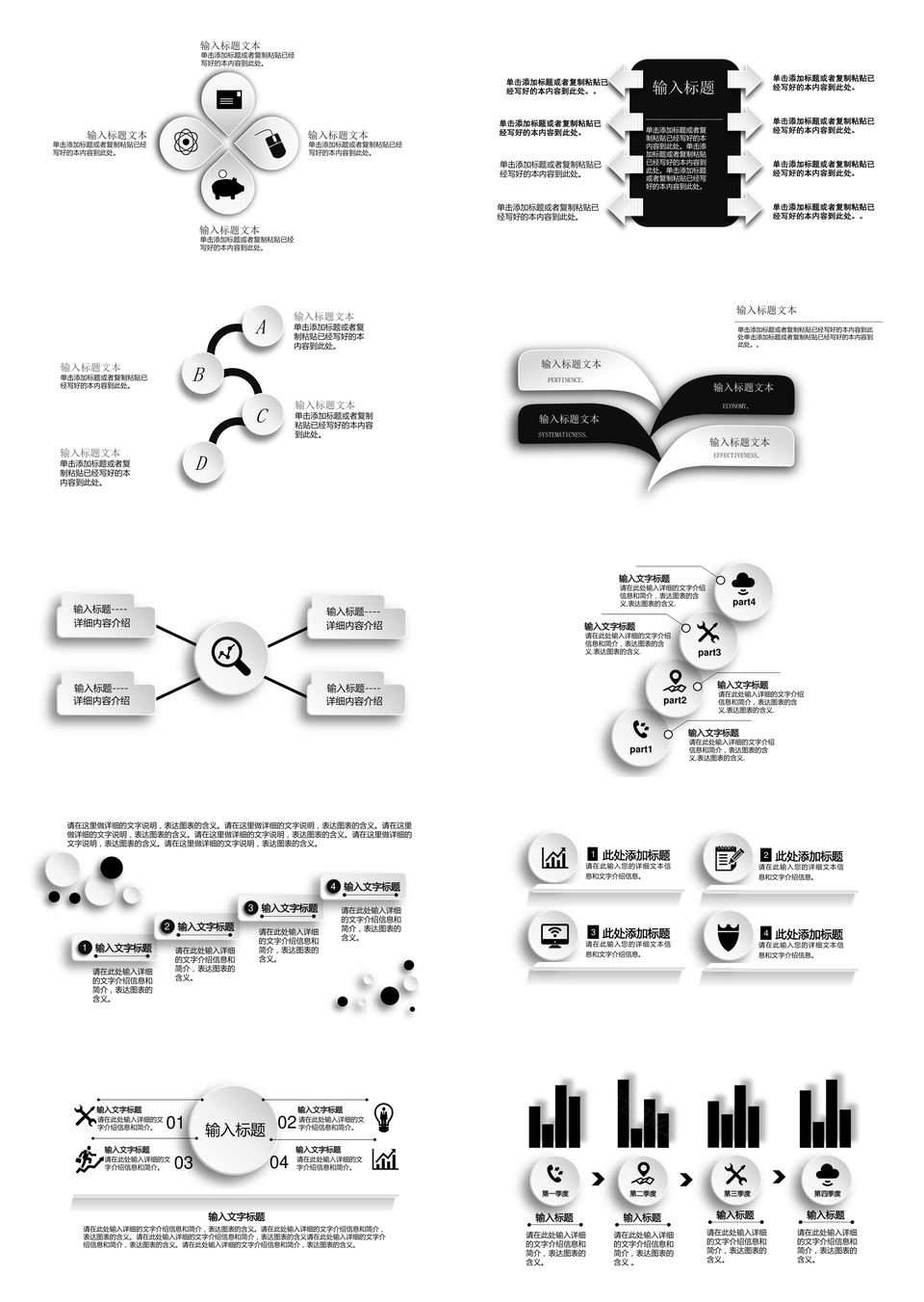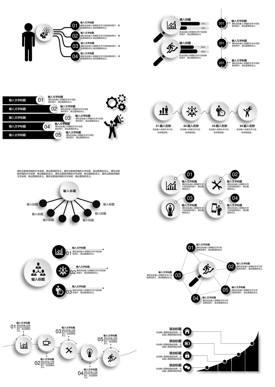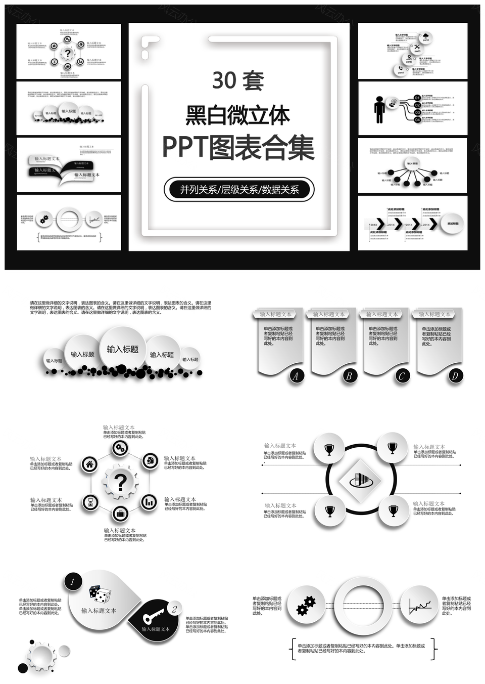 这是一张黑白微立体PPT模板,包含黑白、微立体等主题内容,也可用作黑白、微立体 黑白微立体、微立体黑白等PPT场景使用。 风云办公提供的黑白微立体PPT模板,下载格式为pptx,一共31页,作品中文字及图均可以修改和编辑,图片更改请在作品中右键图片并更换,文字修改请直接点击文字进行修改。