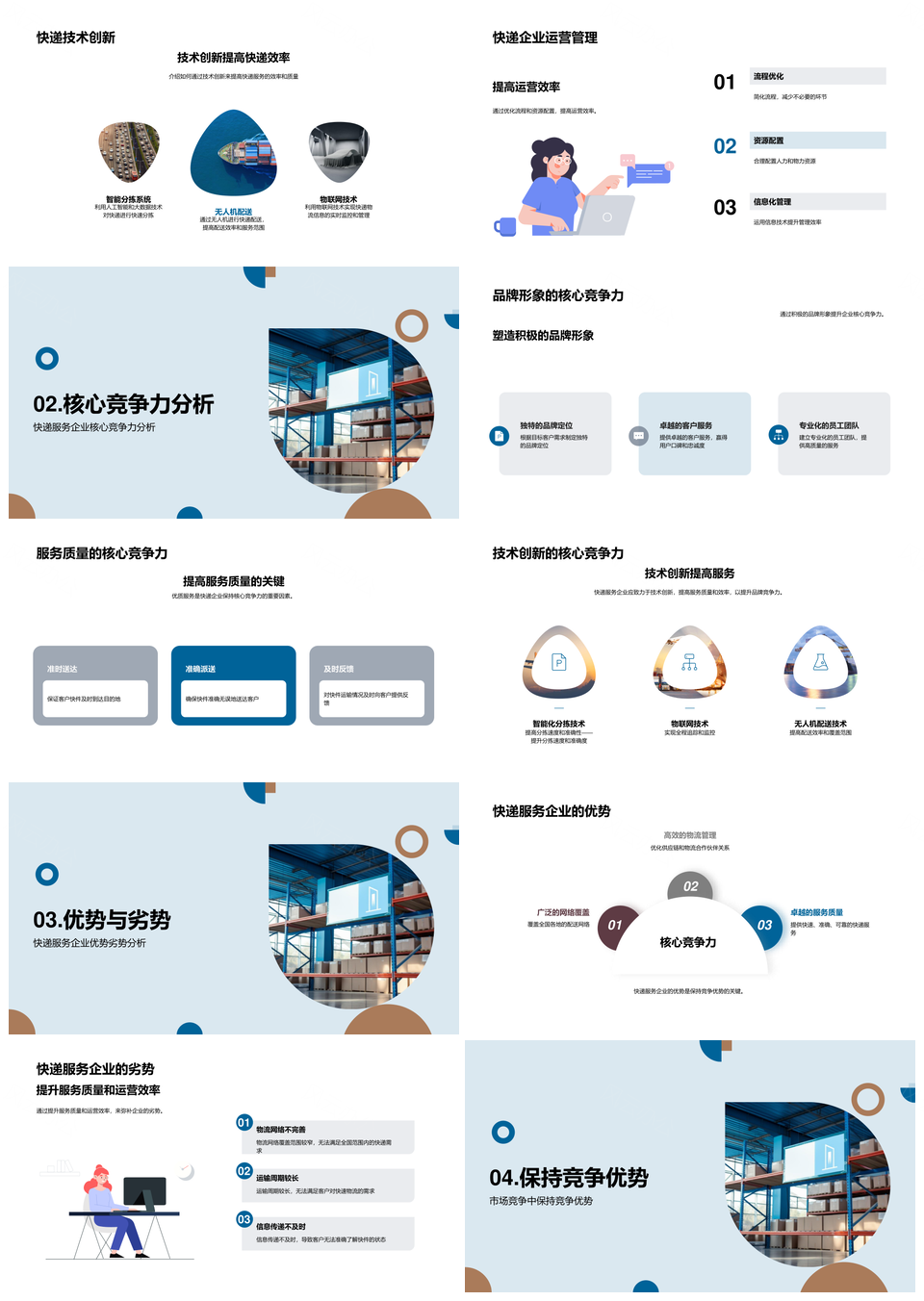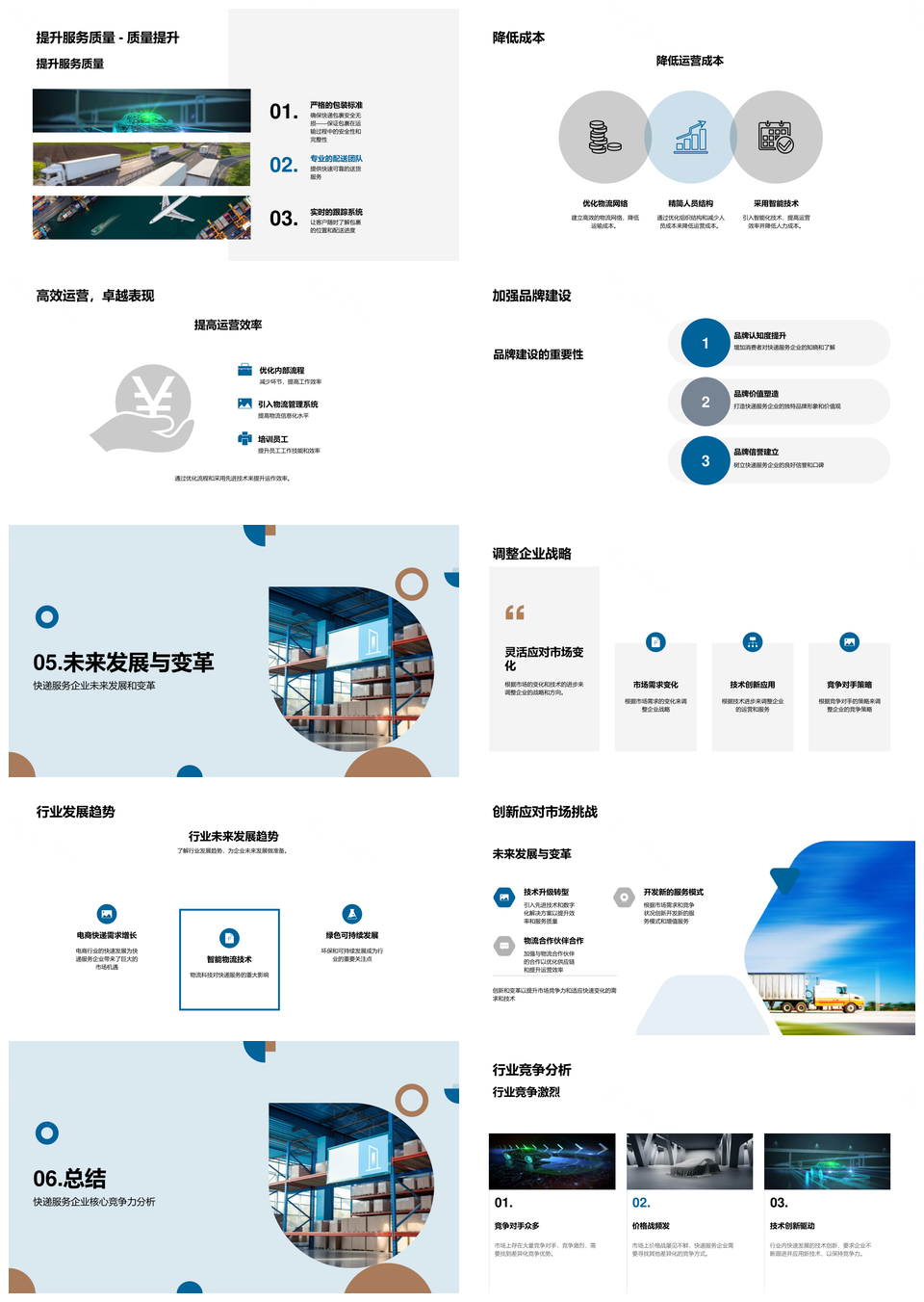 风云办公提供的快递企业核心竞争力量化提升分析PPT模板,下载格式为pptx,一共33页,作品中文字及图均可以修改和编辑,图片更改请在作品中右键图片并更换,文字修改请直接点击文字进行修改。