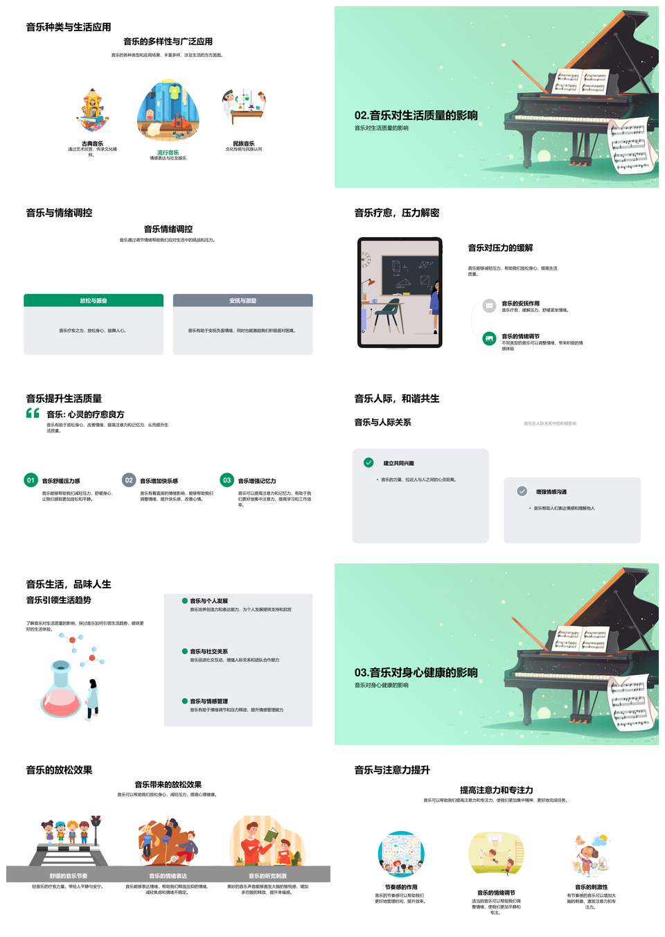 这是一张音乐教学指南调节情绪压力促进健康社交乐活PPT模板,包含音乐教学、指南、调节、情绪、压力、促进、健康、社交、乐活等主题内容,也可用作音乐教学指南调节情绪压力、教学指南调节情绪压力促进、指南调节情绪压力促进健康、调节情绪压力促进健康社交、情绪压力促进健康社交乐活、音乐教学指南调节情绪、教学指南调节情绪压力、指南调节情绪压力促进、调节情绪压力促进健康、情绪压力促进健康社交、音乐教学指南调节、教学指南调节情绪、指南调节情绪压力、调节情绪压力促进、情绪压力促进健康等PPT场景使用。 风云办公提供的音乐教学指南调节情绪压力促进健康社交乐活PPT模板,下载格式为pptx,一共33页,作品中文字及图均可以修改和编辑,图片更改请在作品中右键图片并更换,文字修改请直接点击文字进行修改。