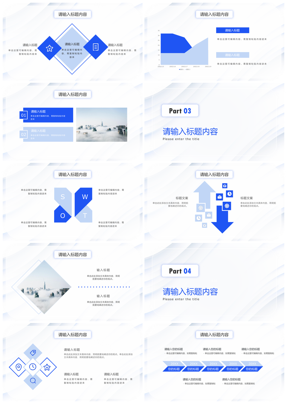 商务极简几何蓝白渐变创意工作总结PPT模板