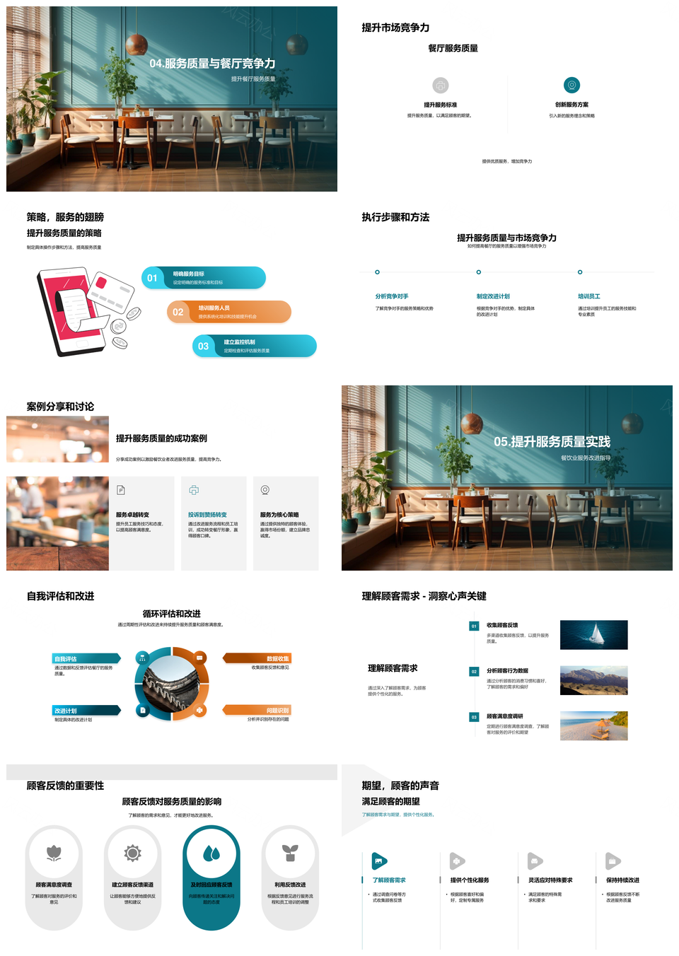 这是一张餐饮服务品质优化提升顾客满意度竞争力PPT模板,包含餐饮服务品质、优化、提升、顾客、满意度、竞争力等主题内容,也可用作餐饮服务品质优化提升、优化提升顾客满意度竞争力、餐饮服务品质优化、品质优化提升顾客满意度、优化提升顾客满意度、提升顾客满意度竞争力、餐饮服务优化提升、顾客满意度竞争力、品质优化提升、品质优化顾客满意度、优化顾客满意度竞争力、餐饮服务品质、品质优化、优化提升、提升顾客满意度等PPT场景使用。 风云办公提供的餐饮服务品质优化提升顾客满意度竞争力PPT模板,下载格式为pptx,一共28页,作品中文字及图均可以修改和编辑,图片更改请在作品中右键图片并更换,文字修改请直接点击文字进行修改。