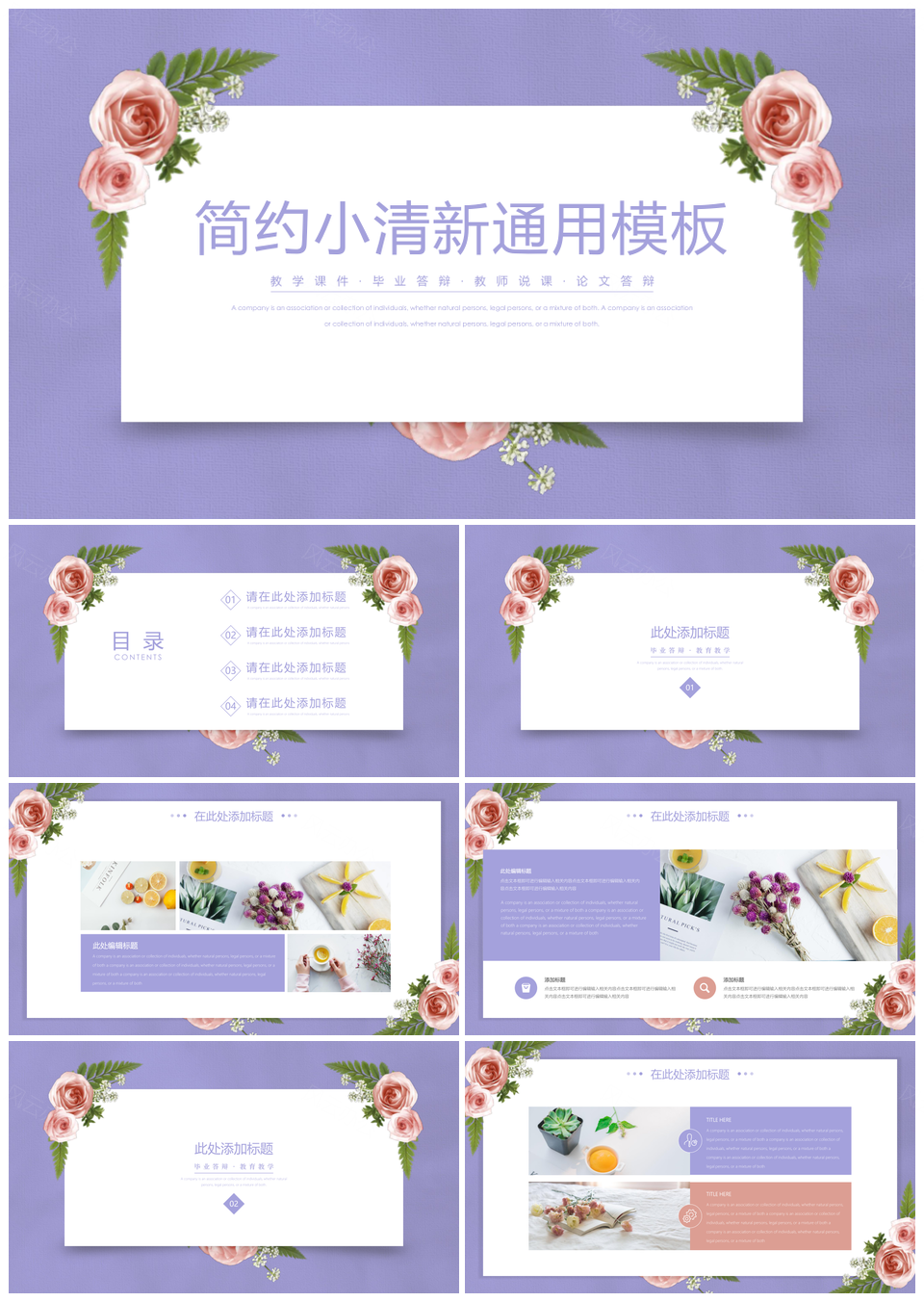 这是一张紫色小清新简约PPT模板,包含紫色、小清新、简约等主题内容,也可用作紫色小清新简约、紫色小清新、小清新简约、紫色简约等PPT场景使用。 风云办公提供的紫色小清新简约PPT模板,下载格式为pptx,一共16页,作品中文字及图均可以修改和编辑,图片更改请在作品中右键图片并更换,文字修改请直接点击文字进行修改。