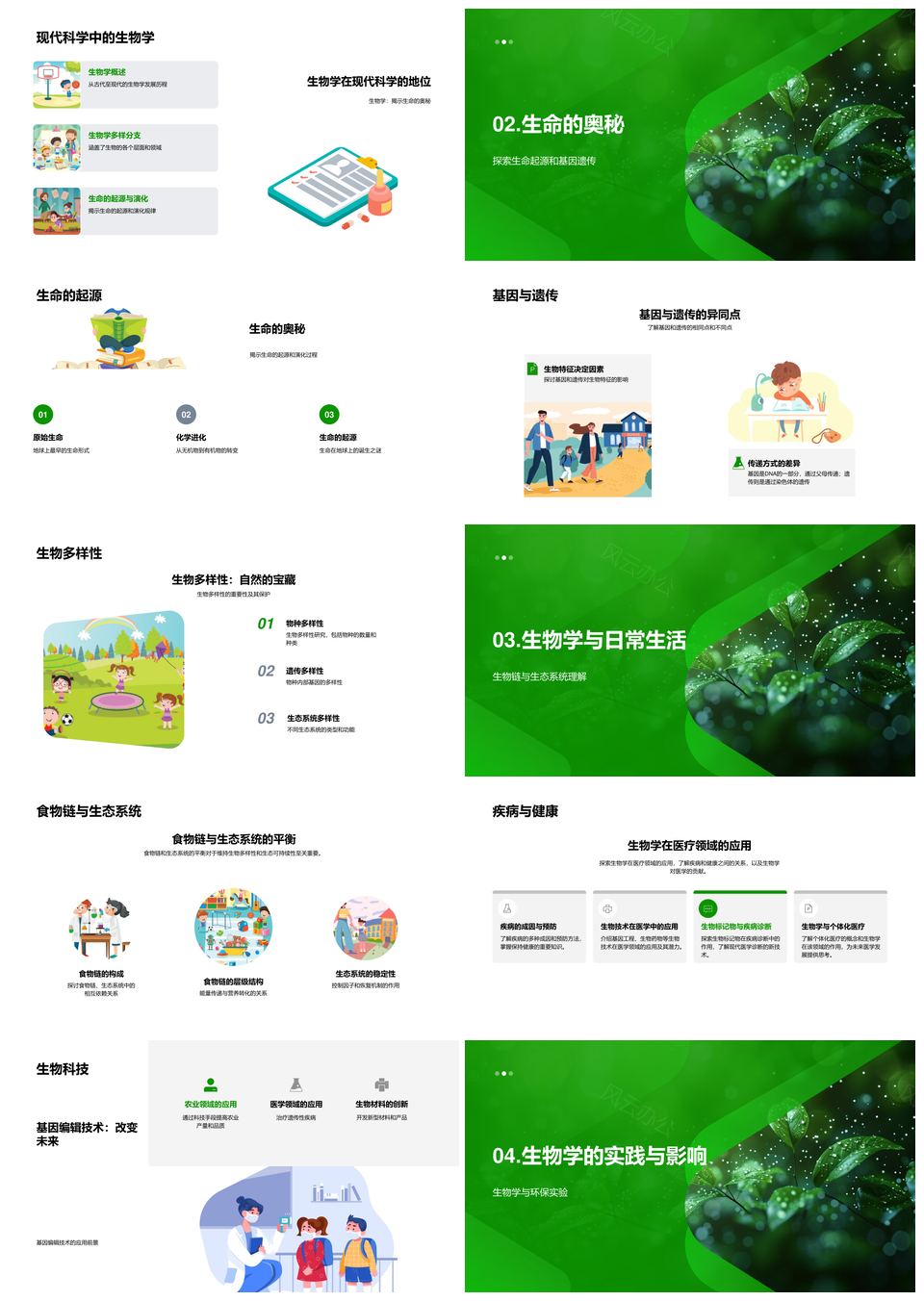 大学生物教育生命演化基因多样科技环保未来PPT模板