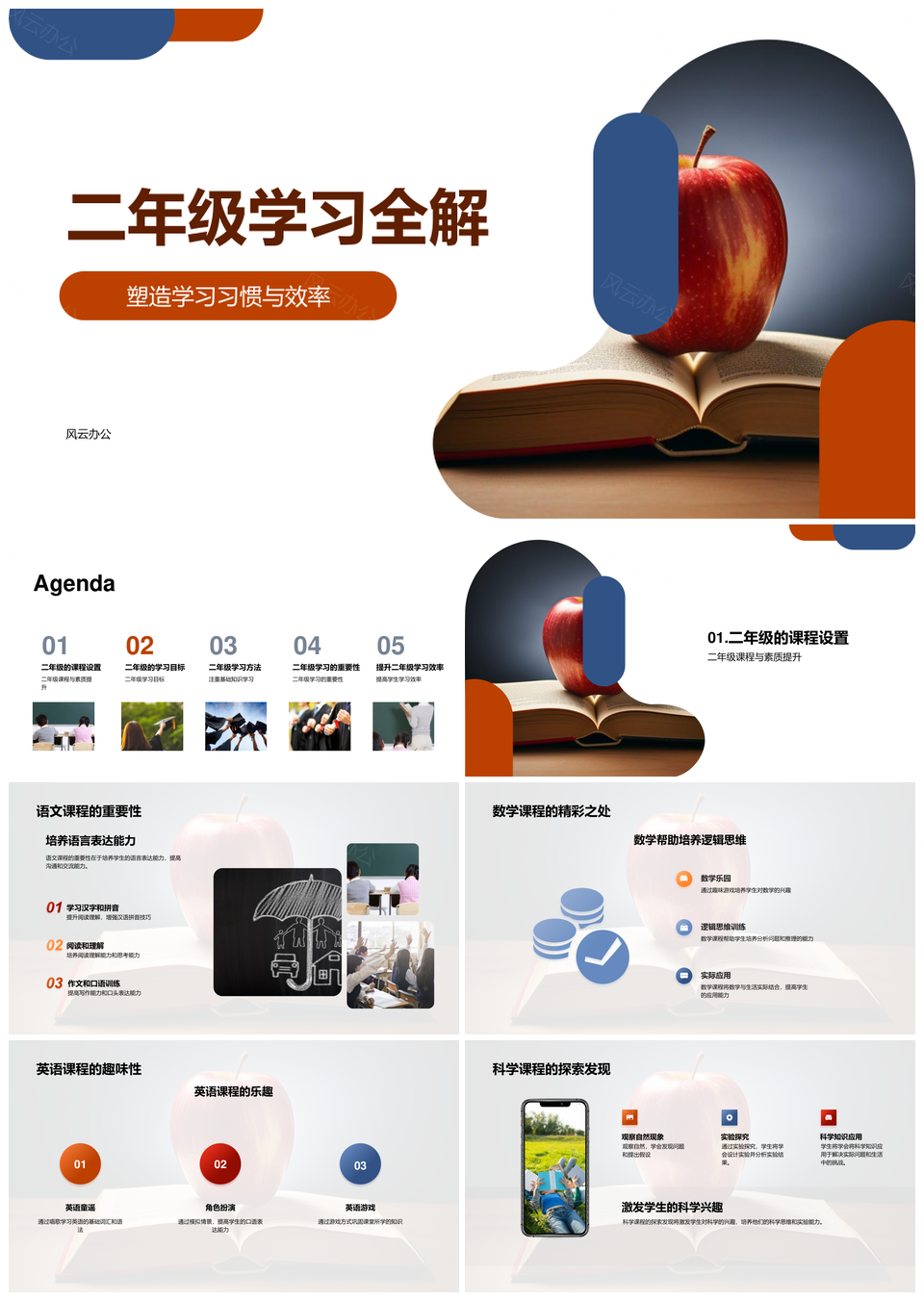 二年级语文英语课程学习目标效率全解PPT模板推荐