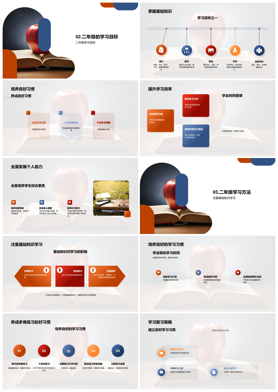 2025二年级学习规划家校协同目标课程高效技巧PPT模板