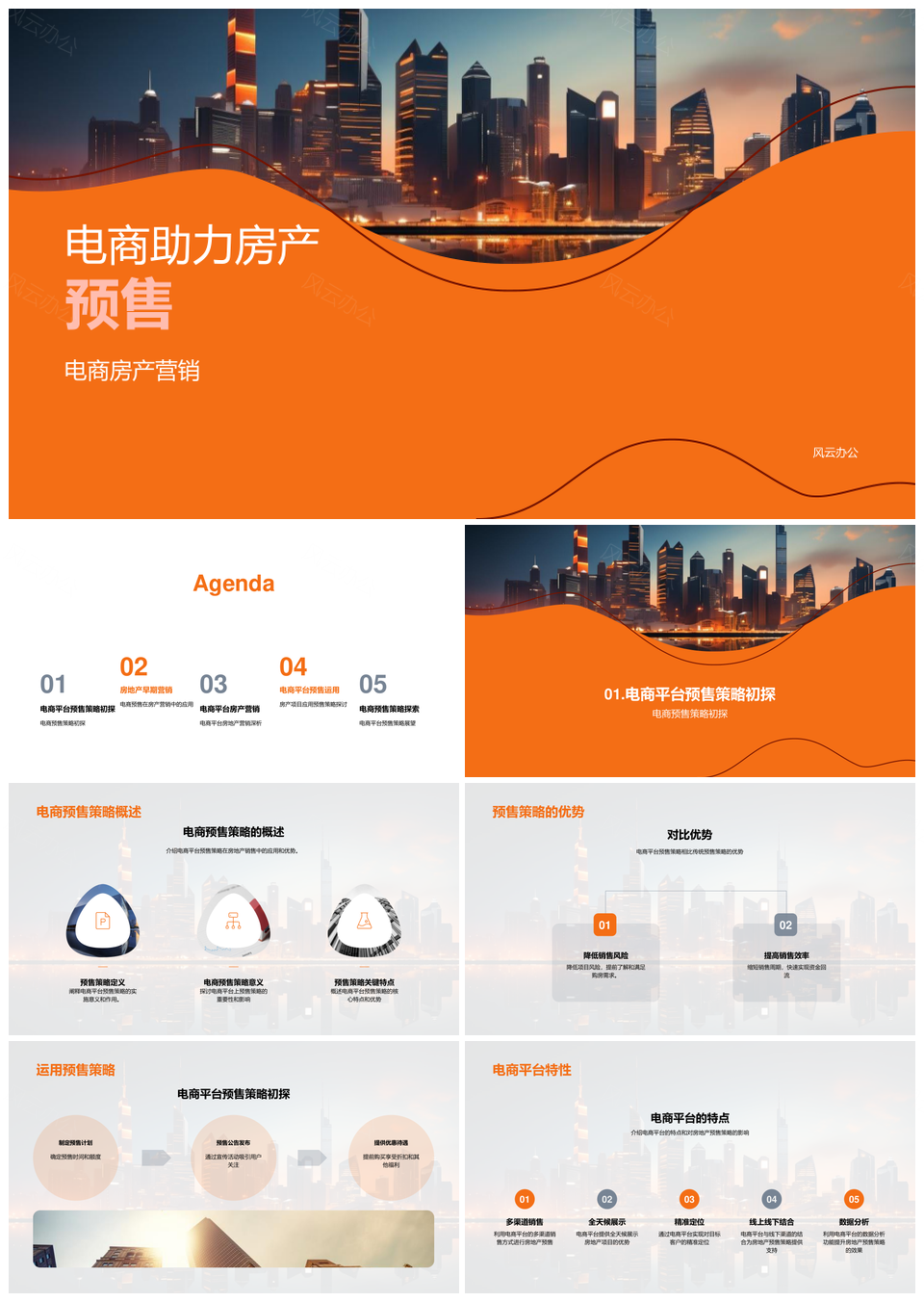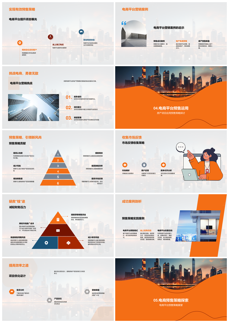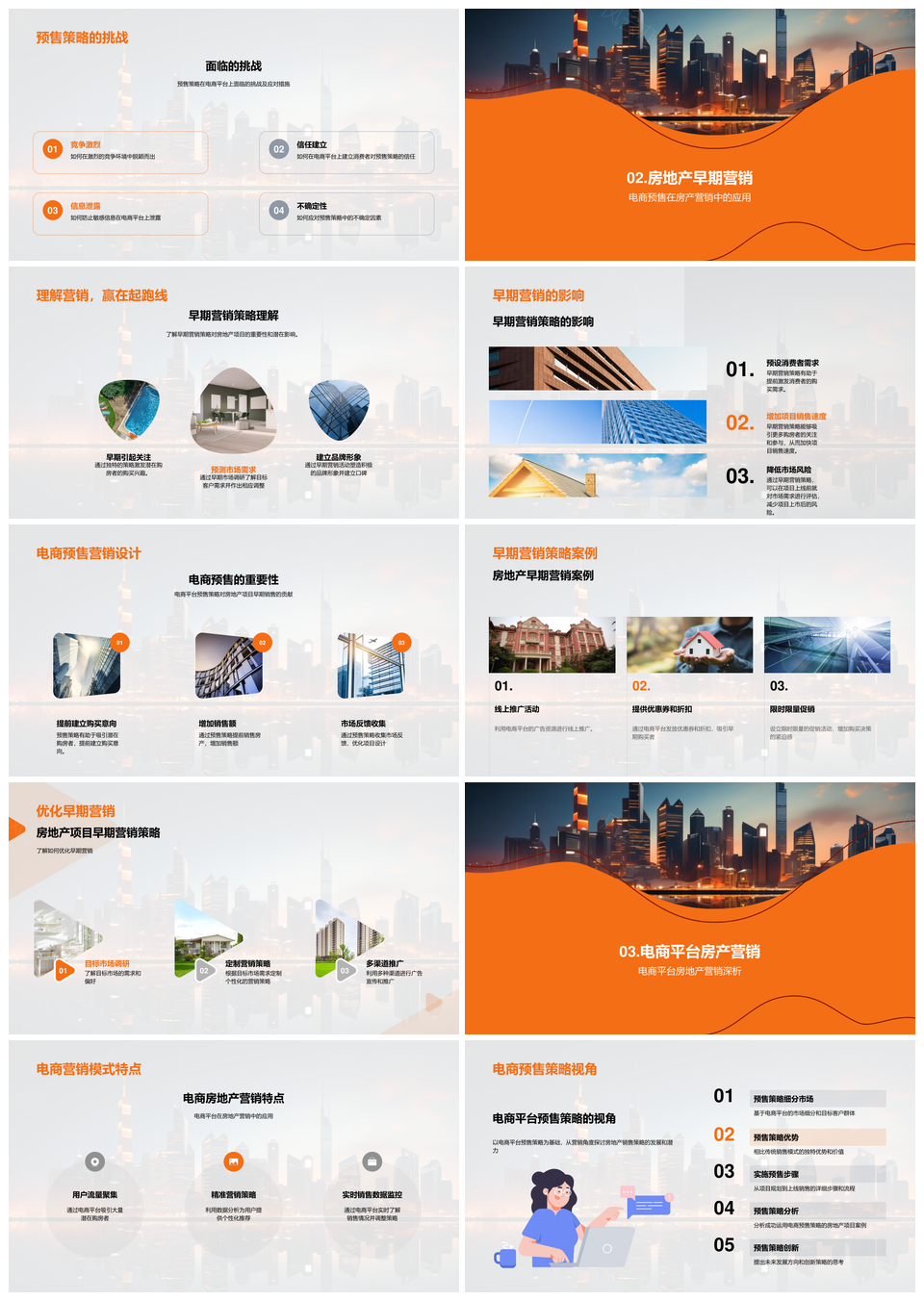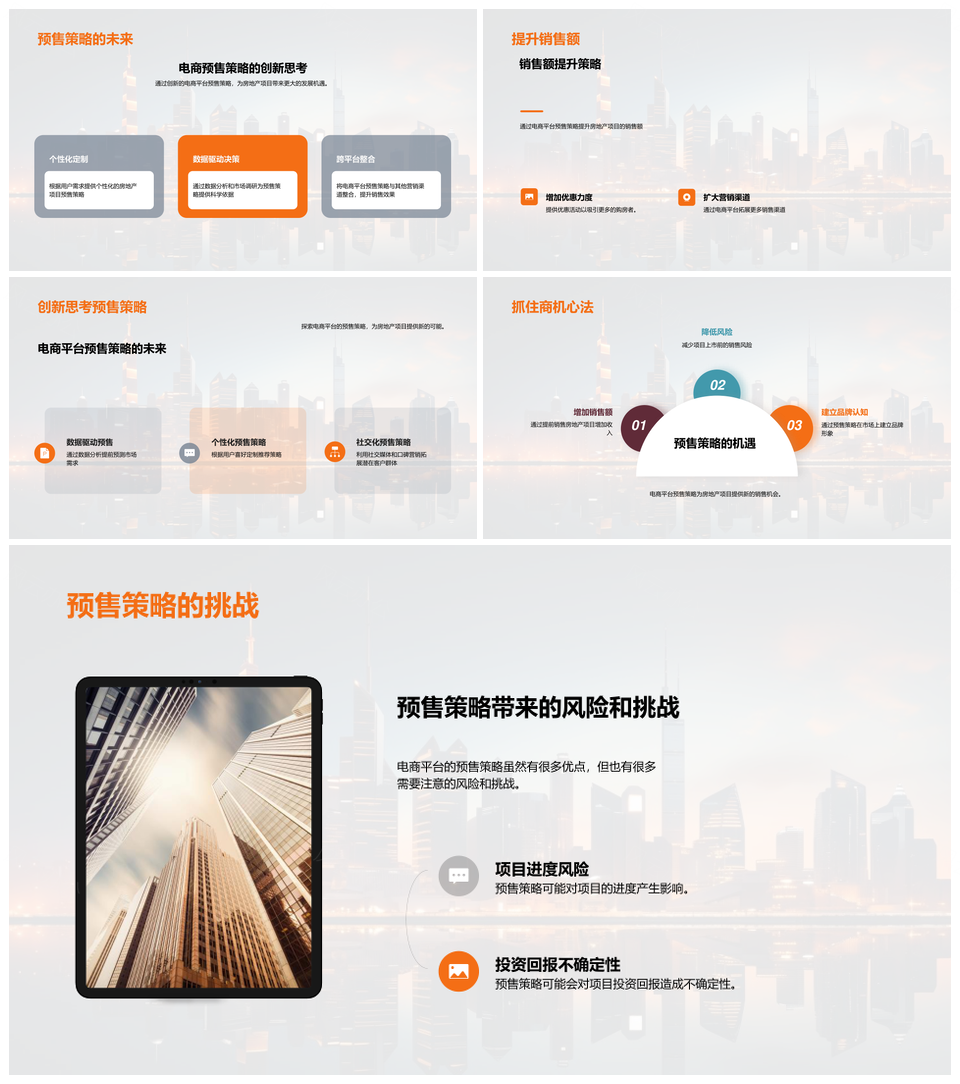 电商平台房产预售策略助力摩天大楼营销PPT模板推荐