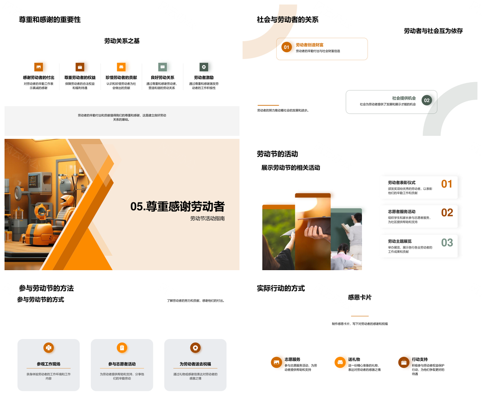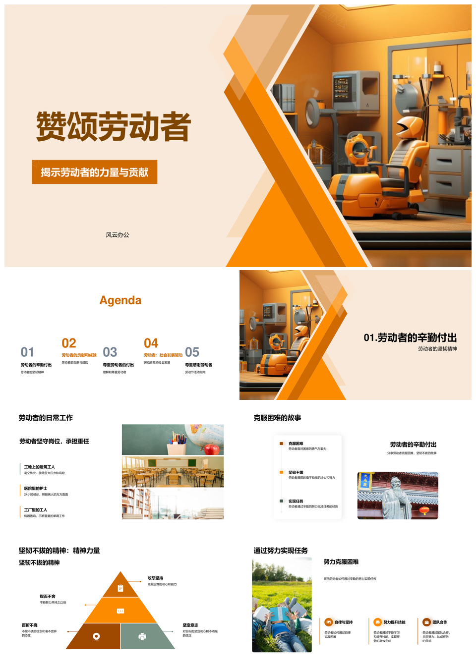 风云办公提供的劳动节礼赞劳动者贡献成就尊教故事PPT模板,下载格式为pptx,一共24页,作品中文字及图均可以修改和编辑,图片更改请在作品中右键图片并更换,文字修改请直接点击文字进行修改。