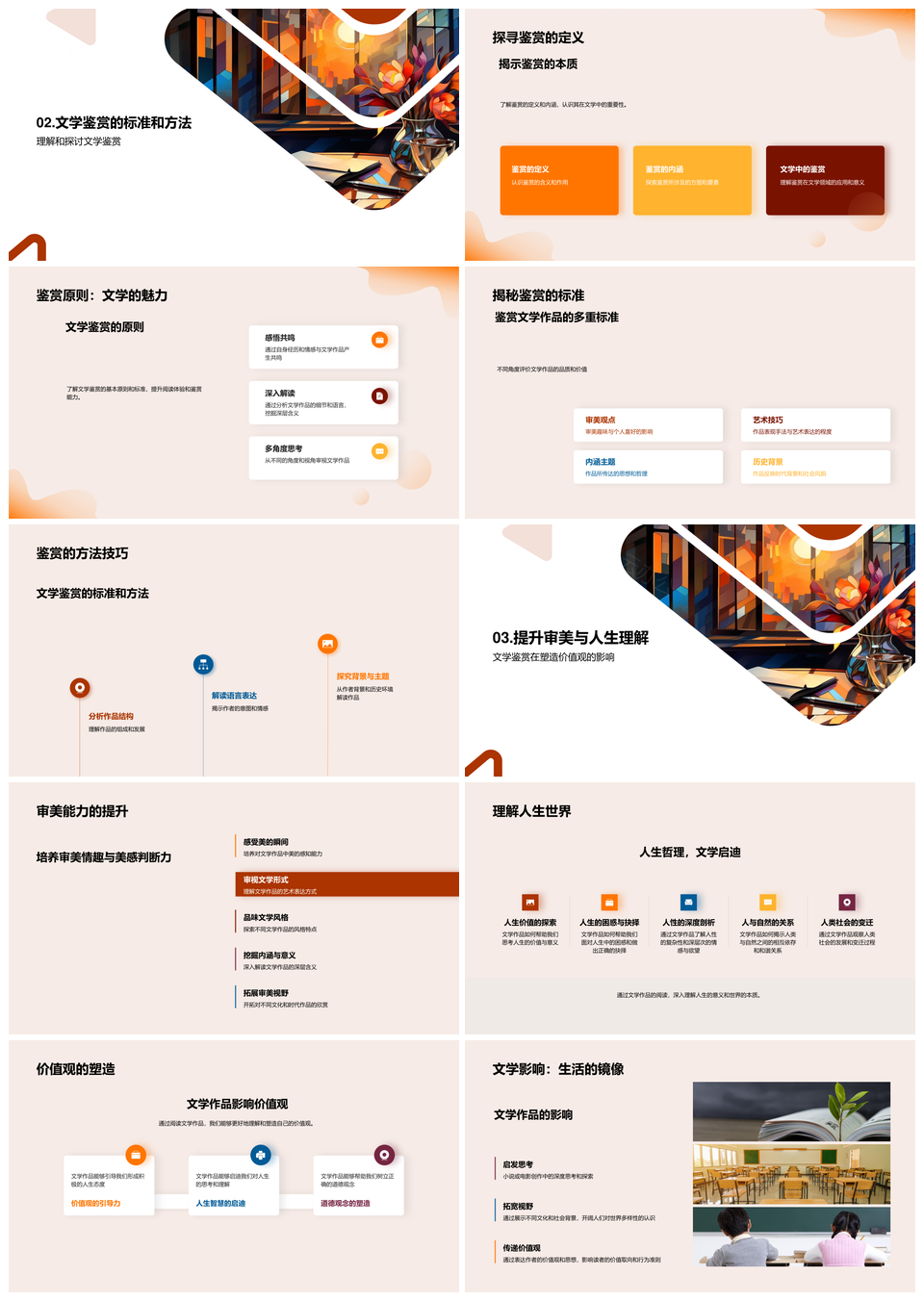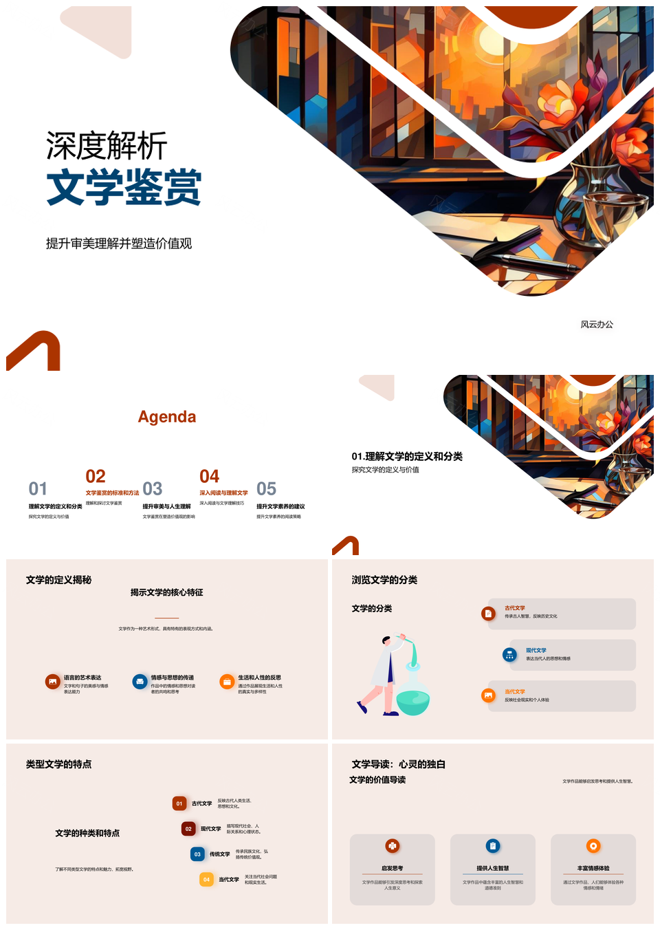 风云办公提供的文学鉴赏审美价值与深度阅读方法解析PPT模板,下载格式为pptx,一共28页,作品中文字及图均可以修改和编辑,图片更改请在作品中右键图片并更换,文字修改请直接点击文字进行修改。