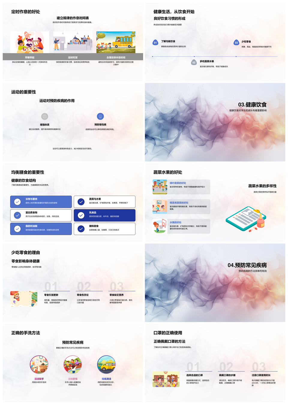 学生健康生活均衡饮食多彩膳食作息运动指南PPT模板