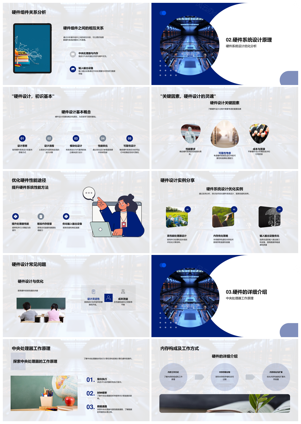 这是一张硬件系统中央处理器内存输入输出设备设计优化PPT模板,包含硬件系统、中央处理器、内存、输入输出设备、设计优化等主题内容,也可用作硬件系统中央处理器内存输入输出设备、硬件系统中央处理器设计优化、中央处理器内存输入输出设备设计、内存输入输出设备设计优化、硬件系统中央处理器内存、硬件系统设计优化、中央处理器内存输入输出设备、内存输入输出设备设计、输入输出设备设计优化、硬件系统中央处理器设计、硬件系统中央处理器优化、中央处理器设计优化、内存设计优化、设计优化、硬件系统中央处理器等PPT场景使用。 风云办公提供的硬件系统中央处理器内存输入输出设备设计优化PPT模板,下载格式为pptx,一共33页,作品中文字及图均可以修改和编辑,图片更改请在作品中右键图片并更换,文字修改请直接点击文字进行修改。