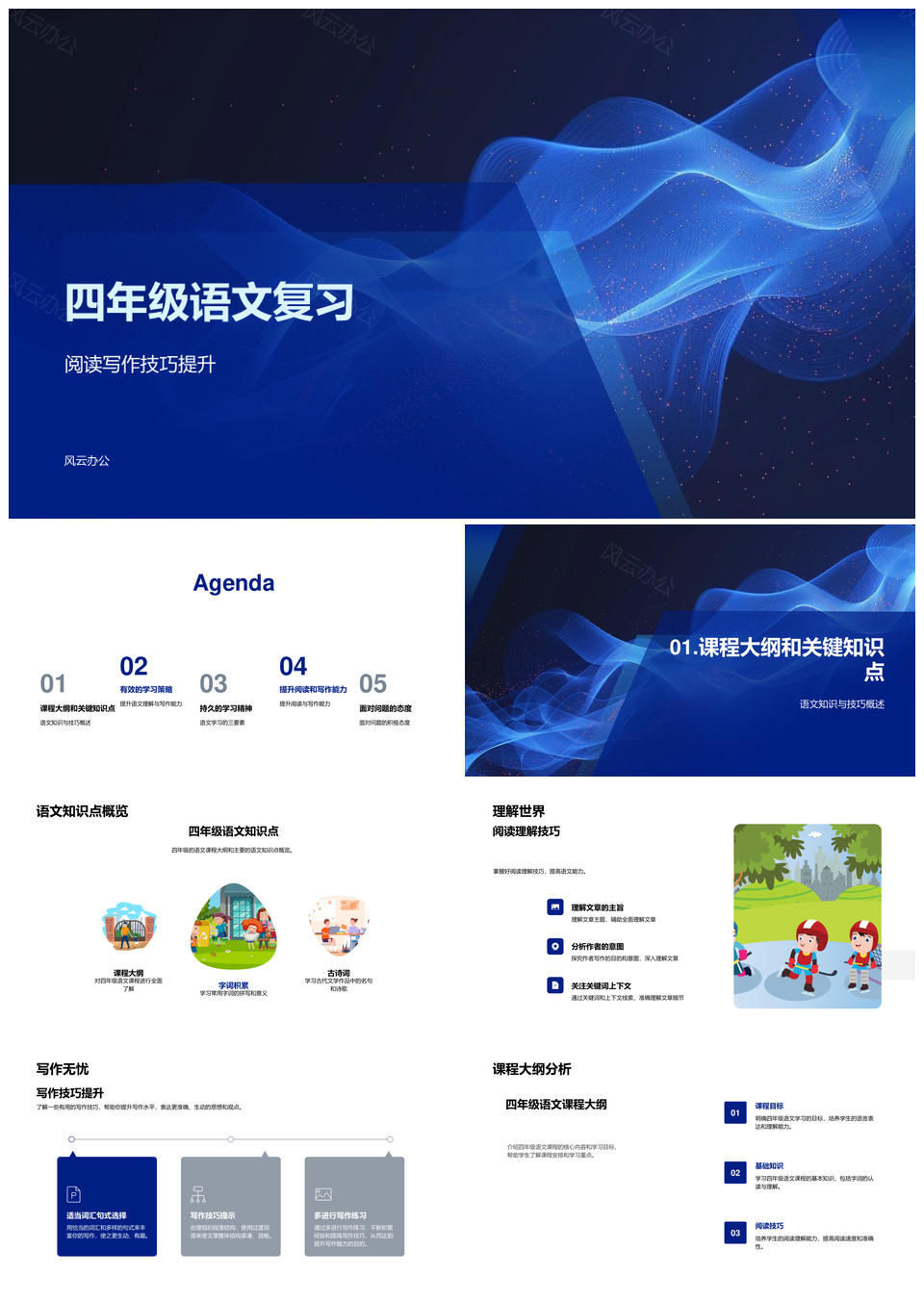 四年级语文读写技巧知识点复习提升策略PPT模板推荐