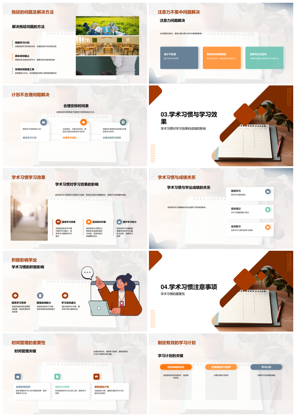 这是一张大学生保持学术习惯学业辅导员技巧培训PPT模板,包含大学生、学术习惯、学业辅导员、技巧培训等主题内容,也可用作大学生保持学术习惯学业辅导员、保持学术习惯学业辅导员、学术习惯学业辅导员技巧、习惯学业辅导员技巧培训、学业辅导员技巧培训、大学生保持学术习惯、保持学术习惯学业、学术习惯学业辅导员、习惯学业辅导员技巧、学业辅导员技巧、保持学术习惯、学术习惯学业、习惯学业辅导员、学业辅导员技巧、辅导员技巧培训等PPT场景使用。 风云办公提供的大学生保持学术习惯学业辅导员技巧培训PPT模板,下载格式为pptx,一共23页,作品中文字及图均可以修改和编辑,图片更改请在作品中右键图片并更换,文字修改请直接点击文字进行修改。
