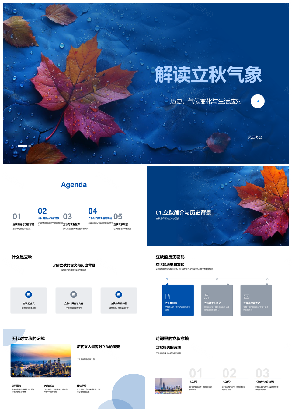 风云办公提供的立秋气象变化与农业生产穿衣建议PPT模板,下载格式为pptx,一共28页,作品中文字及图均可以修改和编辑,图片更改请在作品中右键图片并更换,文字修改请直接点击文字进行修改。