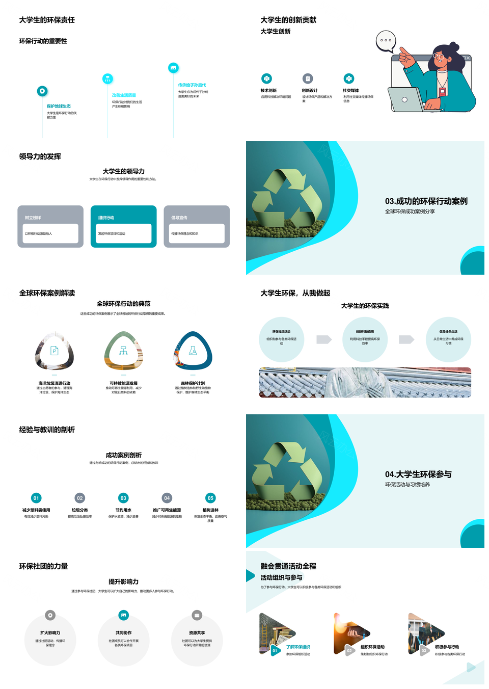 这是一张大学生环保先锋引领生态守护创未来生活PPT模板,包含大学生、环保先锋、引领、生态、守护、创、未来生活等主题内容,也可用作大学生环保先锋引领生态守护、环保先锋引领生态守护、引领生态守护未来生活、生态守护未来生活、大学生环保先锋引领、环保先锋引领生态、守护未来生活、环保先锋引领、先锋引领生态守护、引领生态守护、大学生引领生态守护、生态守护未来、环保先锋、生态守护、大学生环保等PPT场景使用。 风云办公提供的大学生环保先锋引领生态守护创未来生活PPT模板,下载格式为pptx,一共23页,作品中文字及图均可以修改和编辑,图片更改请在作品中右键图片并更换,文字修改请直接点击文字进行修改。