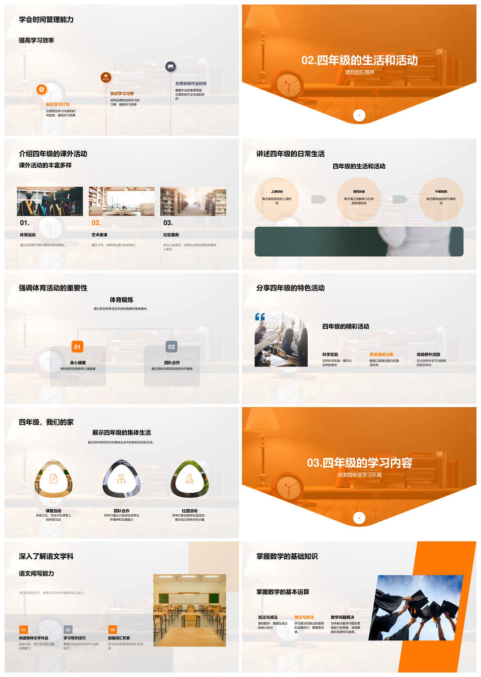 四年级学科学习独立解题时间管理课外体育阅读态度PPT模板推荐