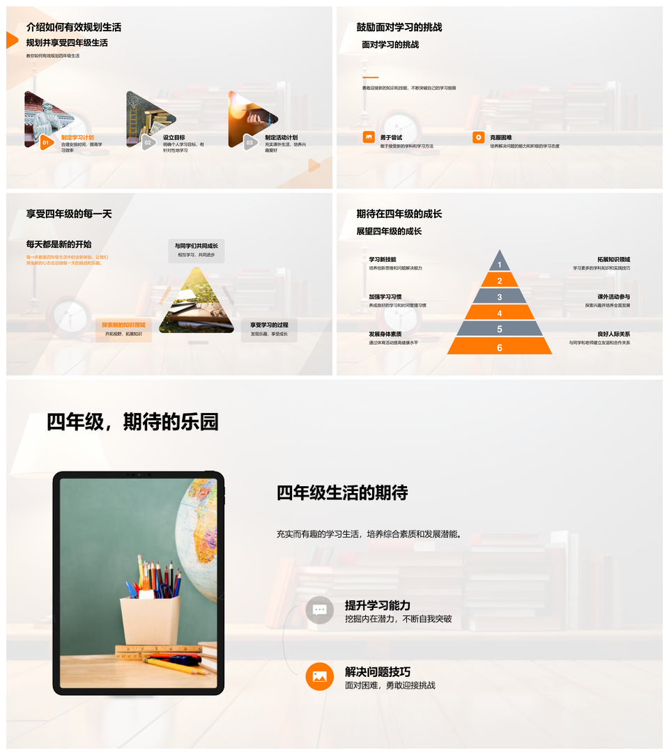 五年级学习目标计划挑战四年级回顾课程升级时间管理PPT模板