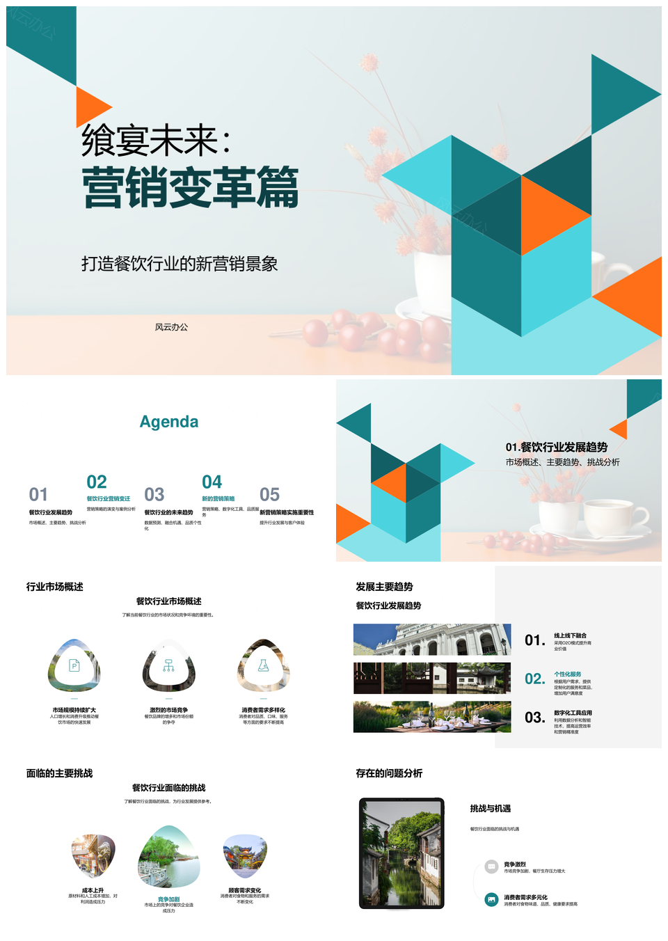 风云办公提供的餐饮数智营销线上线下融合趋势PPT模板,下载格式为pptx,一共33页,作品中文字及图均可以修改和编辑,图片更改请在作品中右键图片并更换,文字修改请直接点击文字进行修改。