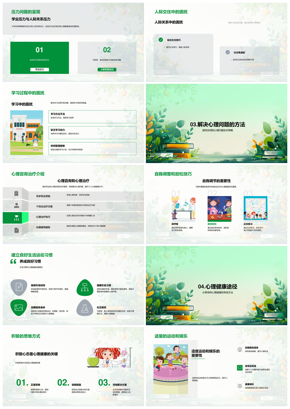 大学生心理健康辅导压力人际学习自我调节PPT模板推荐