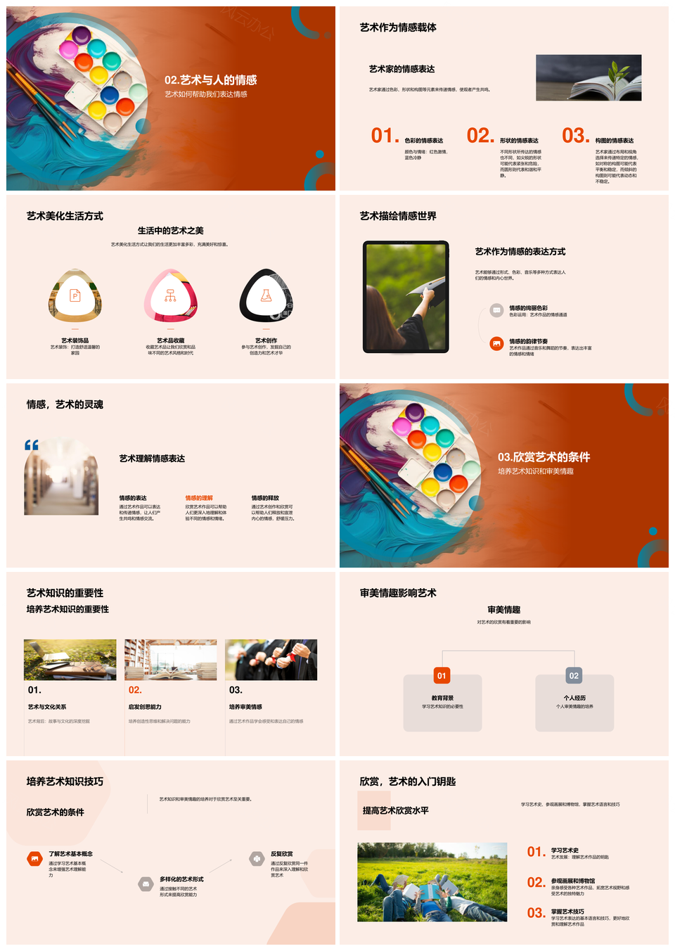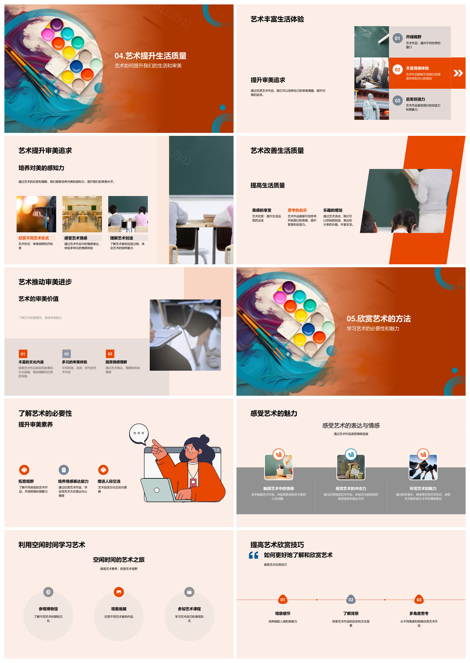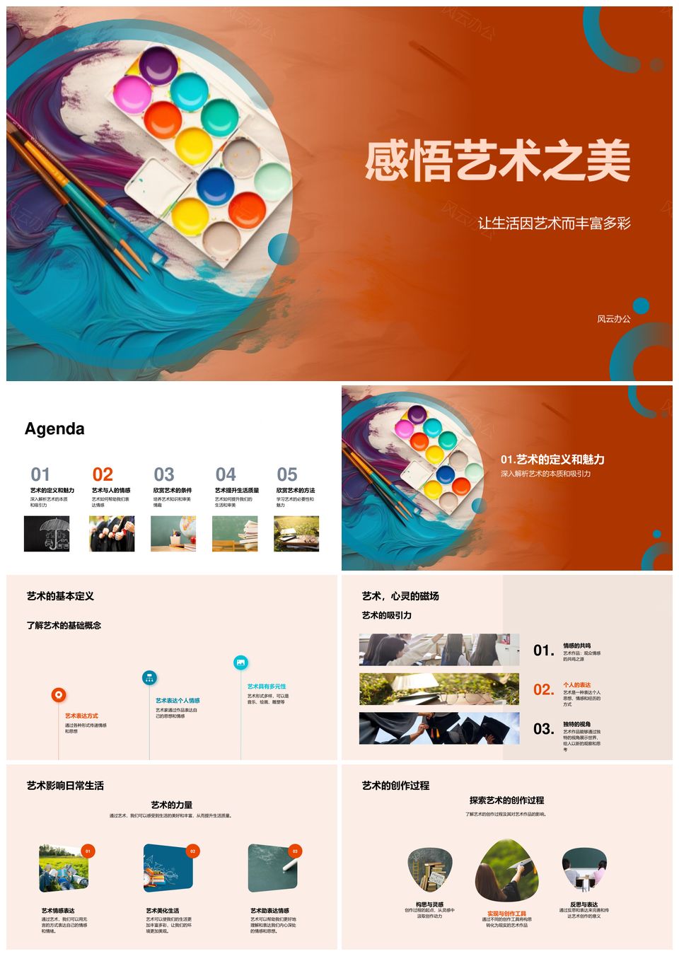 风云办公提供的艺术审美情感提升生活魅力PPT模板,下载格式为pptx,一共28页,作品中文字及图均可以修改和编辑,图片更改请在作品中右键图片并更换,文字修改请直接点击文字进行修改。