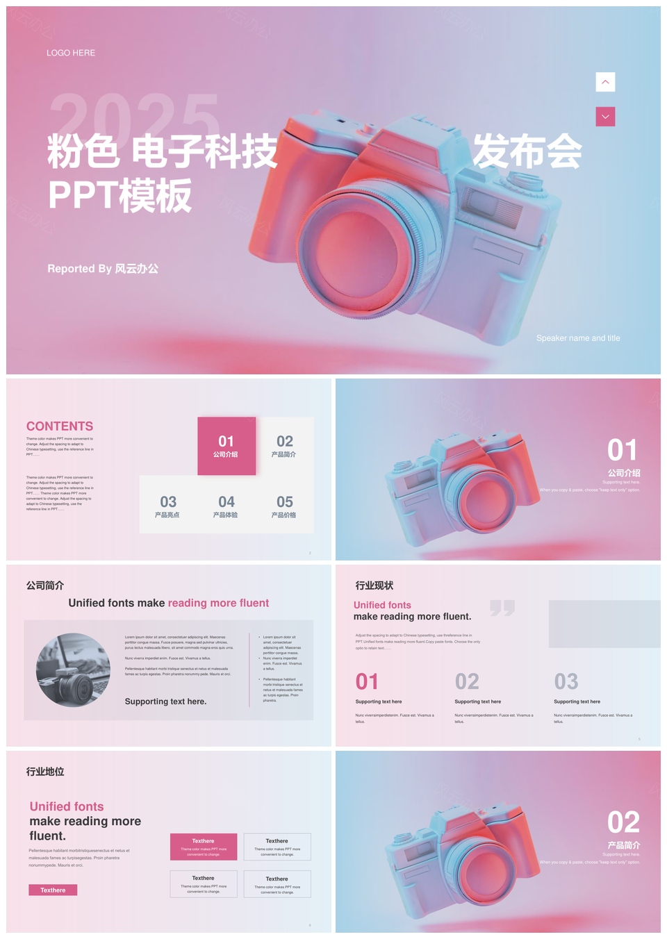 风云办公提供的2025粉蓝炫创智摄电子科技发布会PPT模板,下载格式为pptx,一共20页,作品中文字及图均可以修改和编辑,图片更改请在作品中右键图片并更换,文字修改请直接点击文字进行修改。
