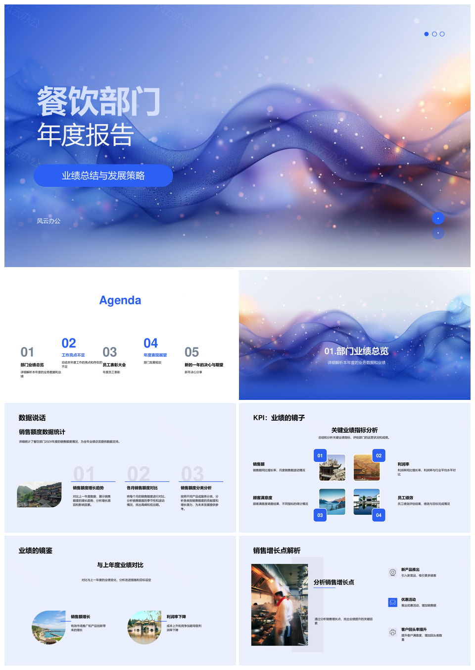 风云办公提供的餐饮部年度业绩总结与发展策略报告PPT模板,下载格式为pptx,一共33页,作品中文字及图均可以修改和编辑,图片更改请在作品中右键图片并更换,文字修改请直接点击文字进行修改。