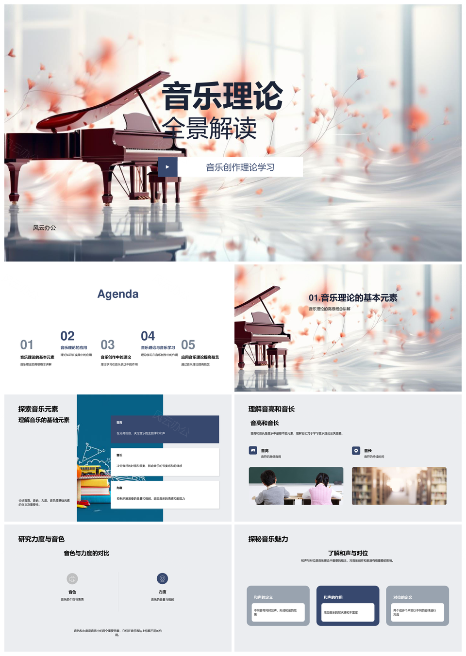 风云办公提供的音乐理论创作与基本元素学习解析PPT模板,下载格式为pptx,一共33页,作品中文字及图均可以修改和编辑,图片更改请在作品中右键图片并更换,文字修改请直接点击文字进行修改。