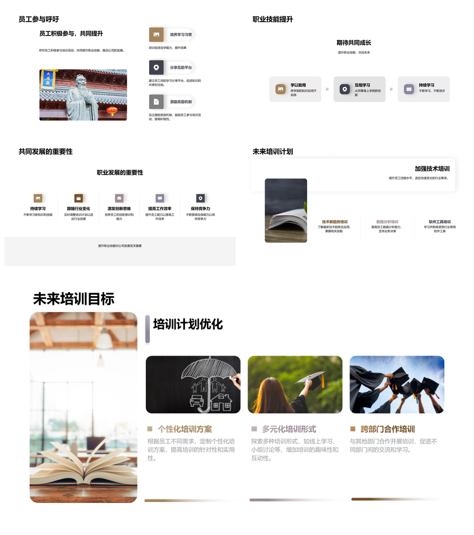 这是一张培训部门年度展望聚焦员工发展领导力培训PPT模板,包含培训部门、年度展望、聚焦、员工发展、领导力、培训等主题内容,也可用作培训部门年度展望、部门年度展望聚焦、年度展望聚焦员工、展望聚焦员工发展、聚焦员工发展领导力、员工发展领导力培训、培训部门年度、部门年度展望、年度展望聚焦、展望聚焦员工、聚焦员工发展、员工发展领导力、培训部门、部门年度、年度展望等PPT场景使用。 风云办公提供的培训部门年度展望聚焦员工发展领导力培训PPT模板,下载格式为pptx,一共33页,作品中文字及图均可以修改和编辑,图片更改请在作品中右键图片并更换,文字修改请直接点击文字进行修改。