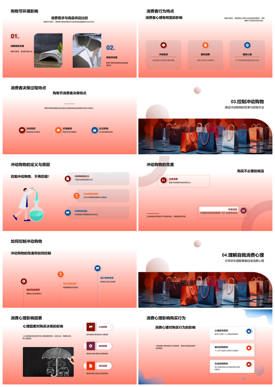 风云办公提供的购物节理性与冲动消费心理探析PPT模板,下载格式为pptx,一共23页,作品中文字及图均可以修改和编辑,图片更改请在作品中右键图片并更换,文字修改请直接点击文字进行修改。