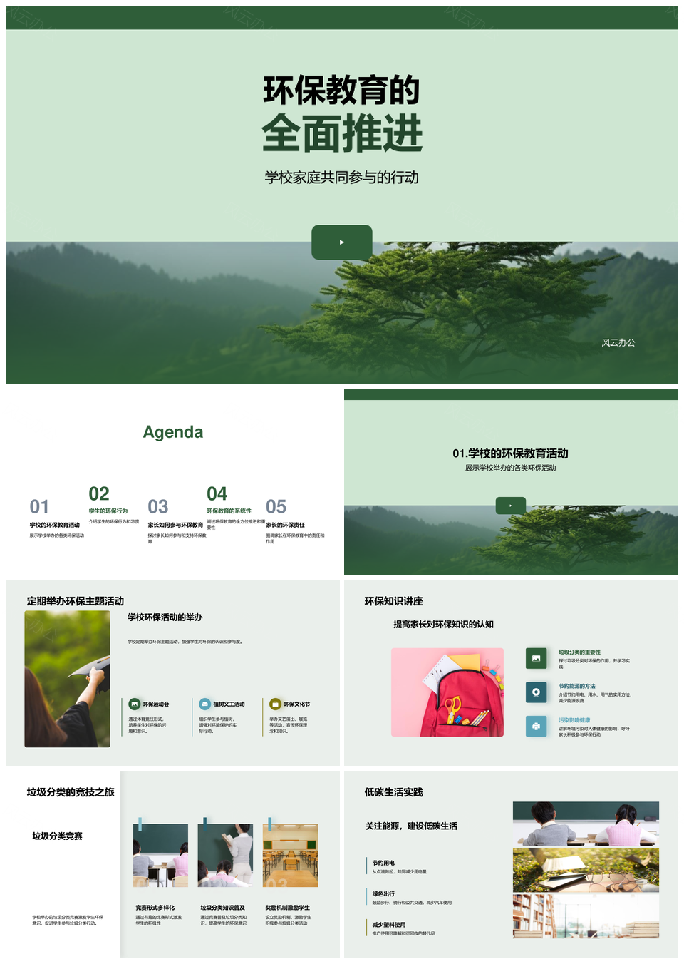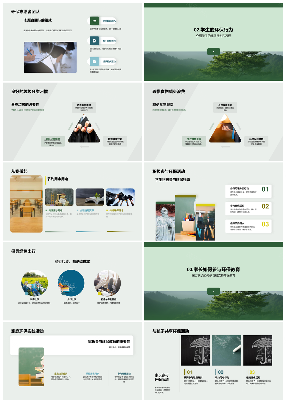 风云办公提供的家校共推环保教育垃圾分类节水实践PPT模板,下载格式为pptx,一共33页,作品中文字及图均可以修改和编辑,图片更改请在作品中右键图片并更换,文字修改请直接点击文字进行修改。