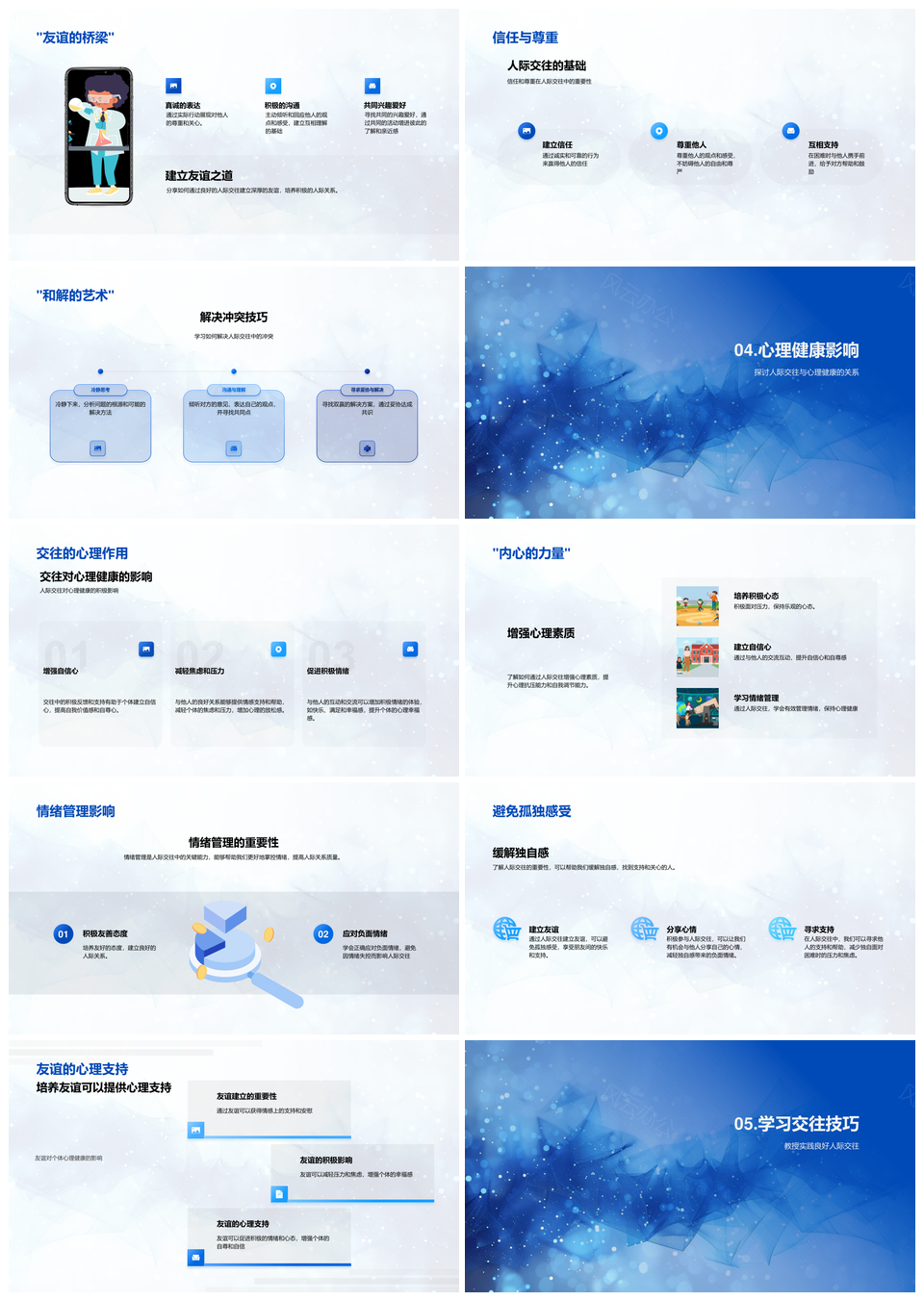 这是一张人际交往线上线下交流与个体发展友谊情绪管理实践PPT模板,包含人际交往、线上线下、交流、个体发展、友谊、情绪管理、实践等主题内容,也可用作人际交往线上线下交流个体发展友谊情绪管理实践、线上线下交流个体发展友谊情绪管理、人际交往个体发展友谊情绪管理实践、线上线下交流友谊情绪管理实践、人际交往线上线下交流友谊情绪管理、个体发展友谊情绪管理实践、线上线下交流个体发展友谊、人际交往个体发展友谊情绪管理、交流个体发展友谊情绪管理、线上线下交流友谊情绪管理、人际交往线上线下交流个体发展、个体发展友谊情绪管理、线上线下交流个体发展、人际交往线上线下交流、友谊情绪管理实践、线上线下交流友谊情绪管理等PPT场景使用。 风云办公提供的人际交往线上线下交流与个体发展友谊情绪管理实践PPT模板,下载格式为pptx,一共33页,作品中文字及图均可以修改和编辑,图片更改请在作品中右键图片并更换,文字修改请直接点击文字进行修改。