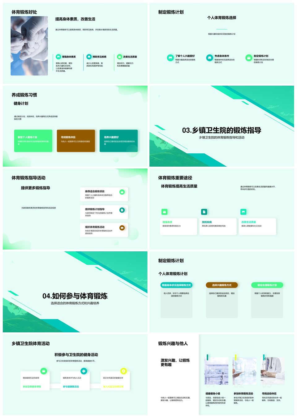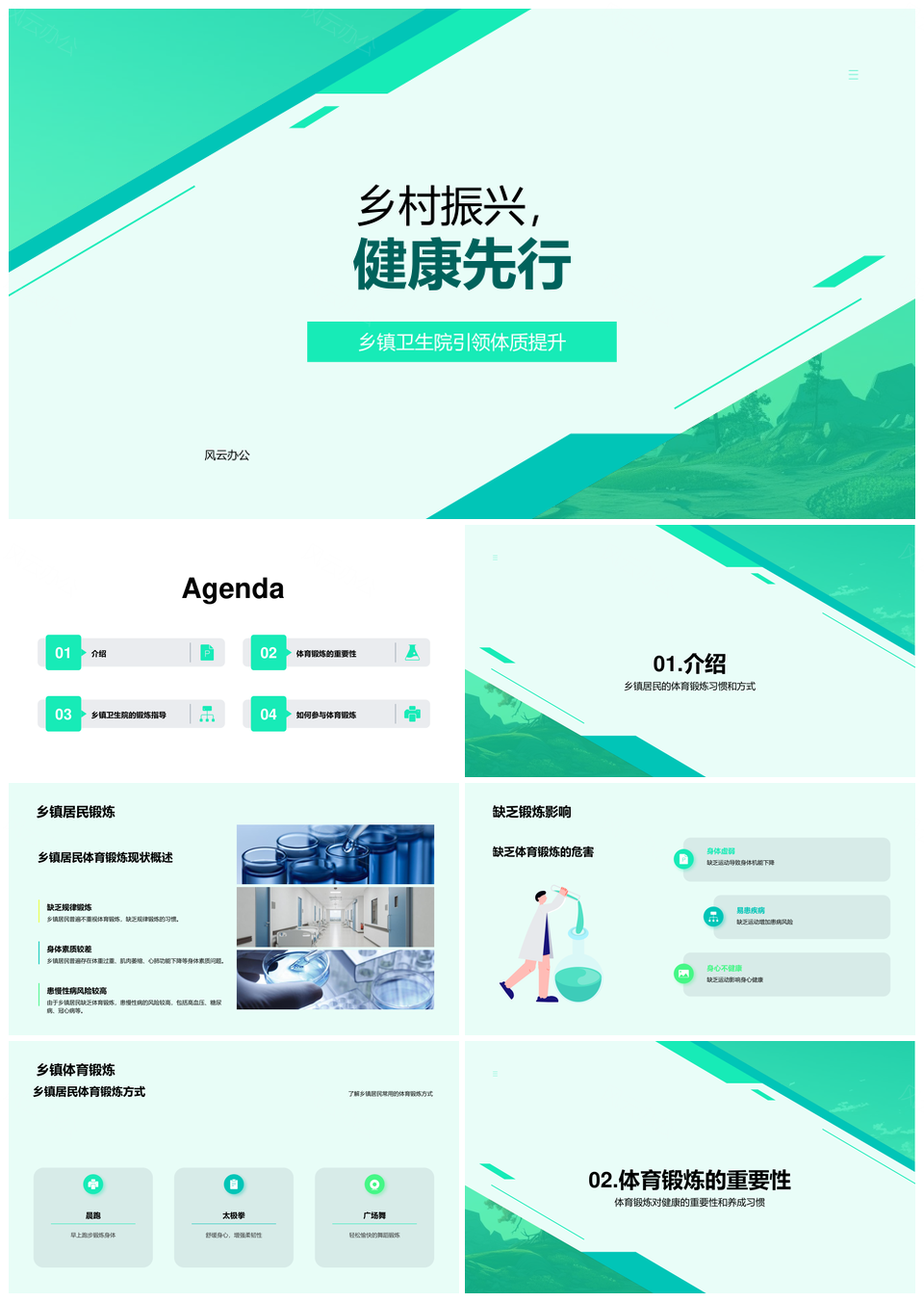 风云办公提供的乡村居民健身强体健康生活助振兴PPT模板,下载格式为pptx,一共18页,作品中文字及图均可以修改和编辑,图片更改请在作品中右键图片并更换,文字修改请直接点击文字进行修改。