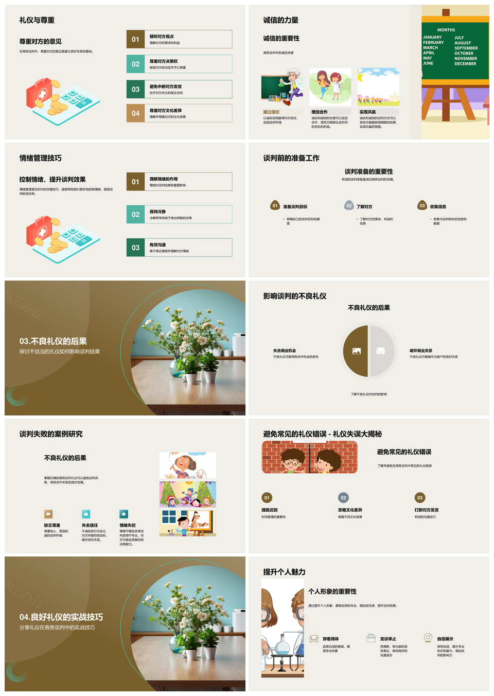 这是一张商务谈判礼仪销售团队培训诚信尊重情绪准备PPT模板,包含商务谈判、礼仪、销售团队、培训、诚信、尊重、情绪准备等主题内容,也可用作商务谈判礼仪培训、销售团队诚信尊重、商务谈判团队培训、诚信尊重情绪准备、团队培训诚信尊重、商务谈判礼仪销售、销售团队情绪准备、培训诚信尊重情绪、商务谈判诚信尊重、商务礼仪销售团队、谈判团队培训诚信、销售培训诚信尊重、团队诚信尊重情绪、礼仪培训诚信尊重、情绪准备诚信尊重等PPT场景使用。 风云办公提供的商务谈判礼仪销售团队培训诚信尊重情绪准备PPT模板,下载格式为pptx,一共25页,作品中文字及图均可以修改和编辑,图片更改请在作品中右键图片并更换,文字修改请直接点击文字进行修改。