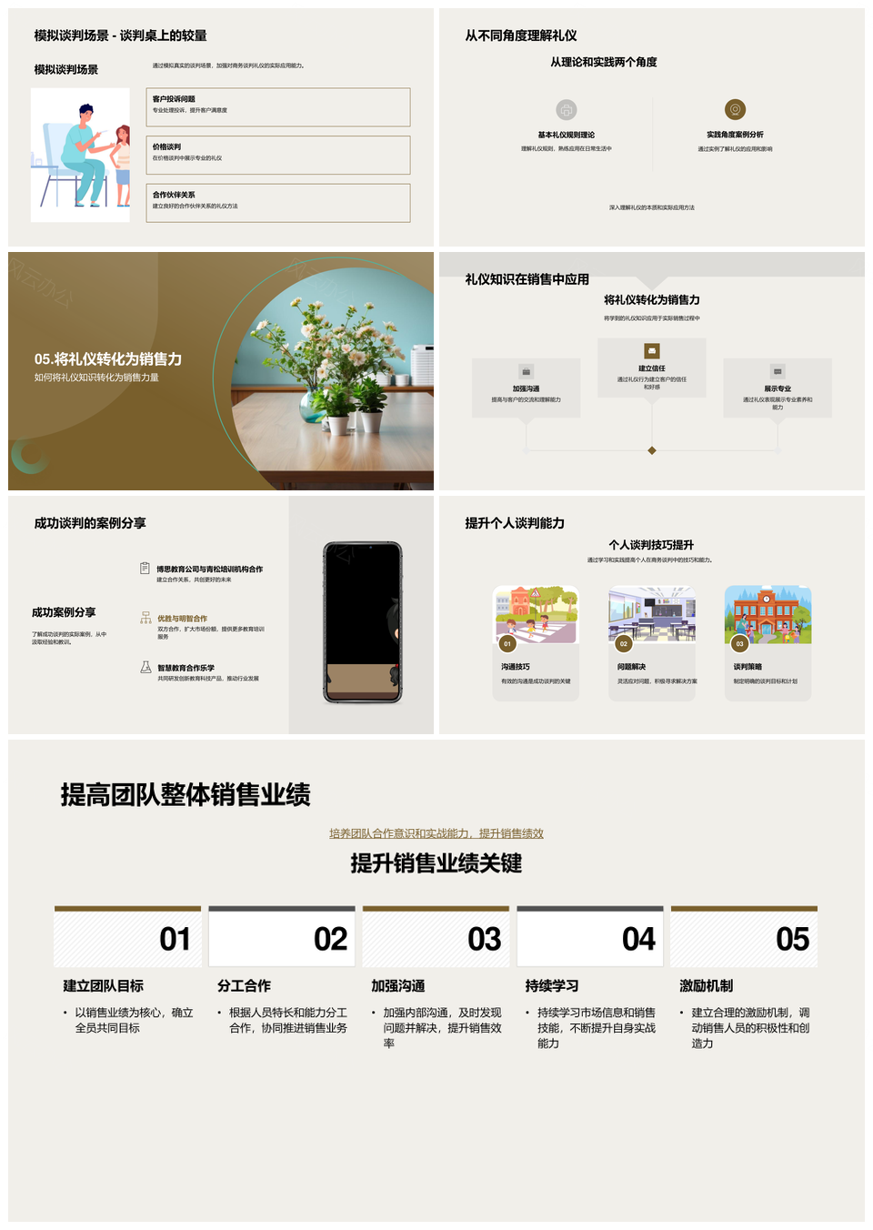 商务谈判礼仪销售团队培训诚信尊重情绪准备PPT模板推荐