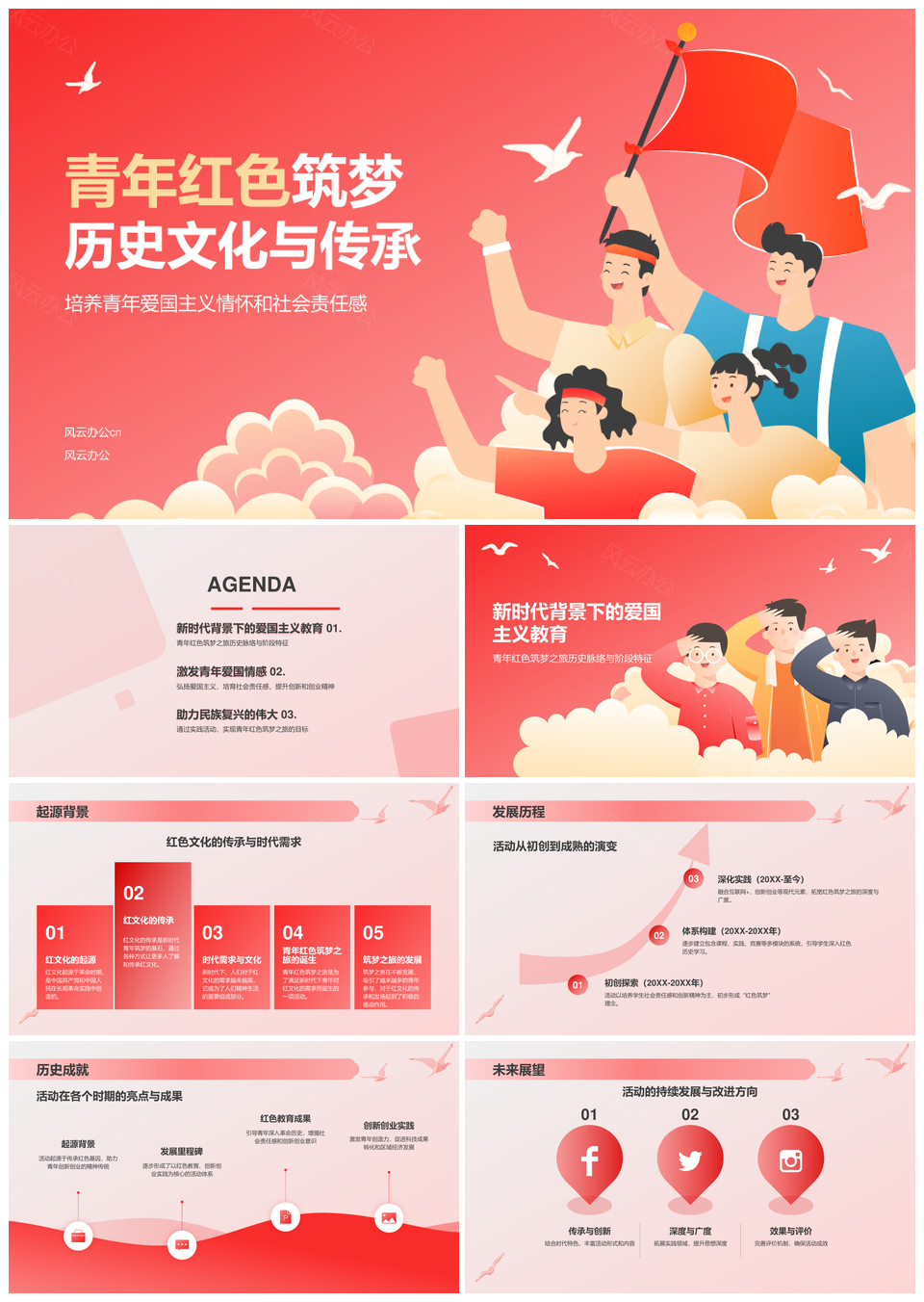 新时代青年红色筑梦爱国传承复兴PPT模板
