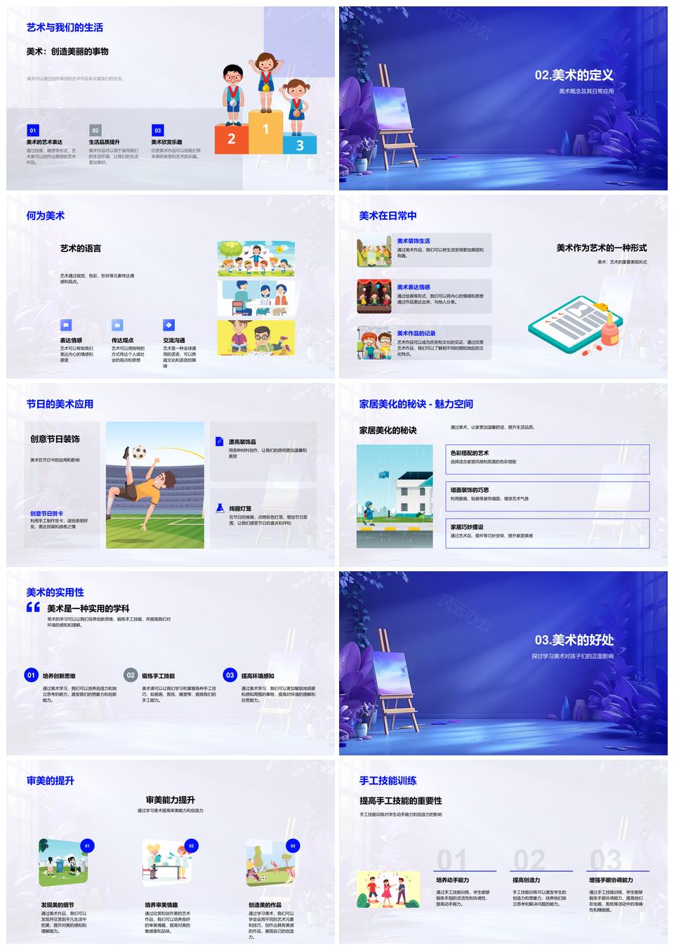 这是一张美术艺术创作审美手工创新家居节日美化PPT模板,包含美术、艺术创作、审美、手工、创新、家居、节日、美化等主题内容,也可用作美术艺术创作手工创新、艺术创作手工创新家居、手工创新家居节日美化、美术艺术创作手工、创作审美手工创新、审美手工创新家居、手工创新家居节日、美术艺术创作、艺术创作审美手工、创作手工家居节日、创新家居节日美化、美术艺术手工、艺术创作家居、家居节日美化、手工创新美化等PPT场景使用。 风云办公提供的美术艺术创作审美手工创新家居节日美化PPT模板,下载格式为pptx,一共33页,作品中文字及图均可以修改和编辑,图片更改请在作品中右键图片并更换,文字修改请直接点击文字进行修改。
